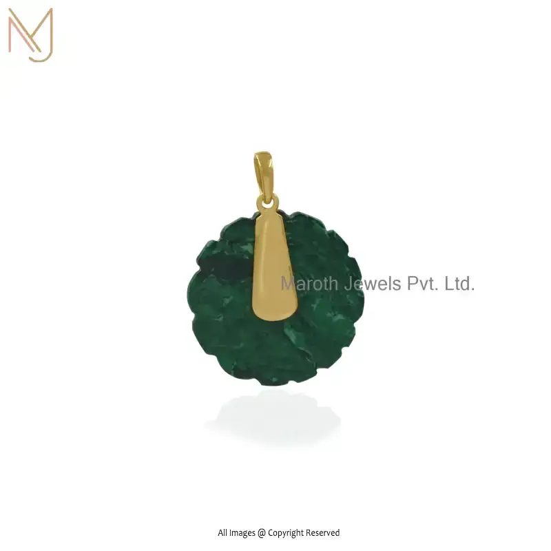 925 Sterling Silver Yellow Gold Plated Malachite And Pink CZ Flower Gemstone Pendant Custom Jewelry