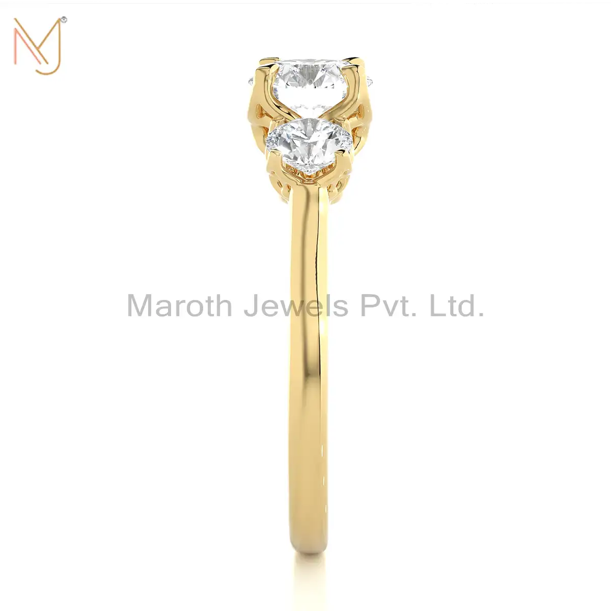 925 Silver Yellow Gold Moissanite Diamond Round Ring Custom Jewelry
