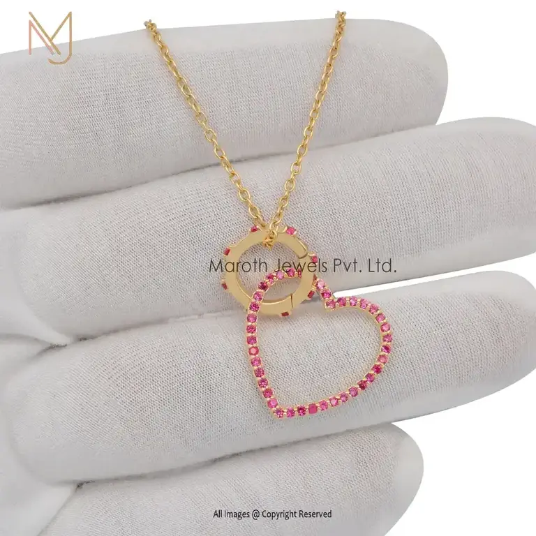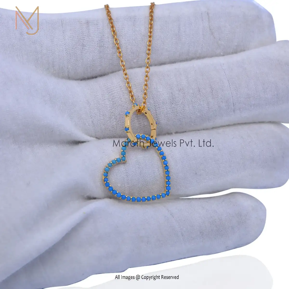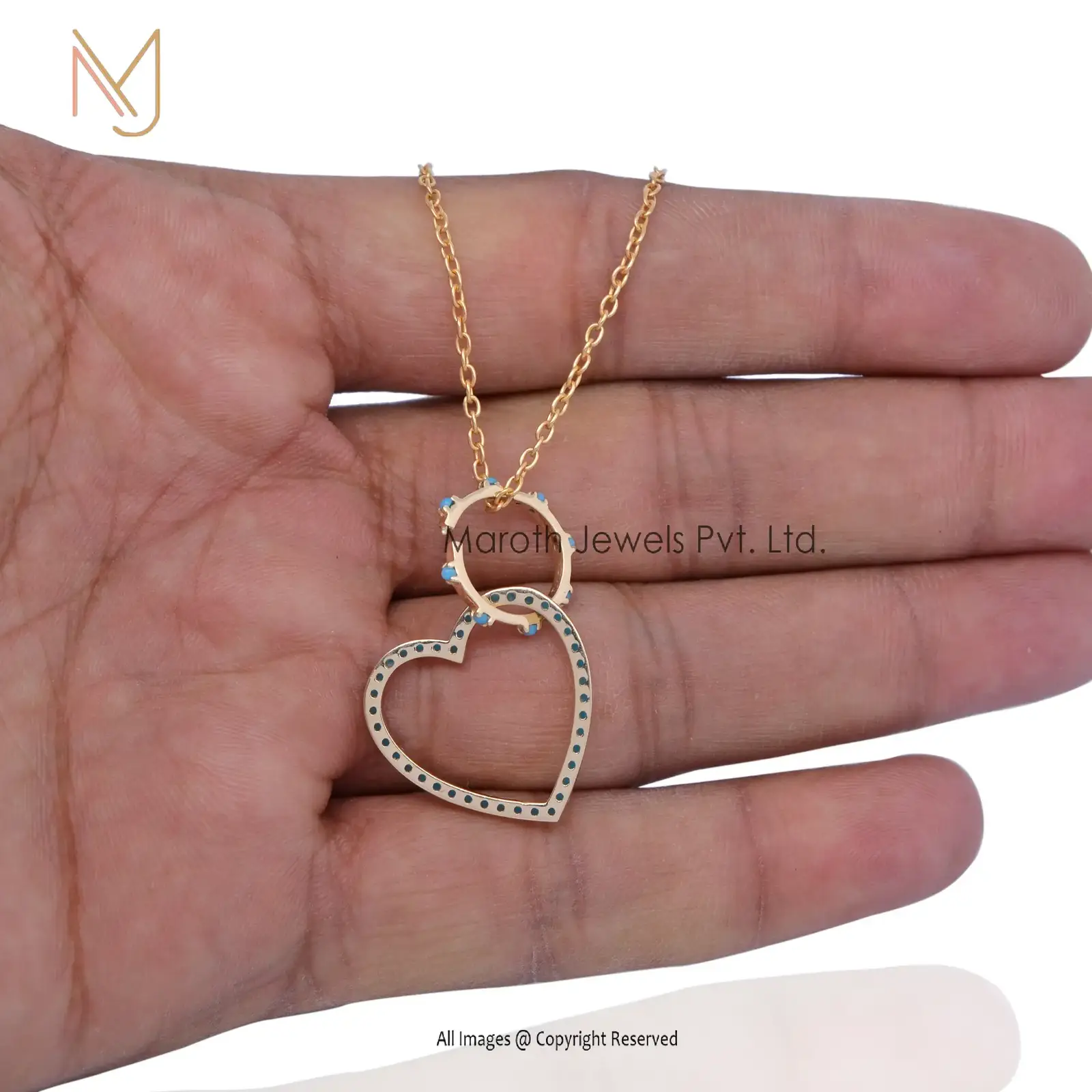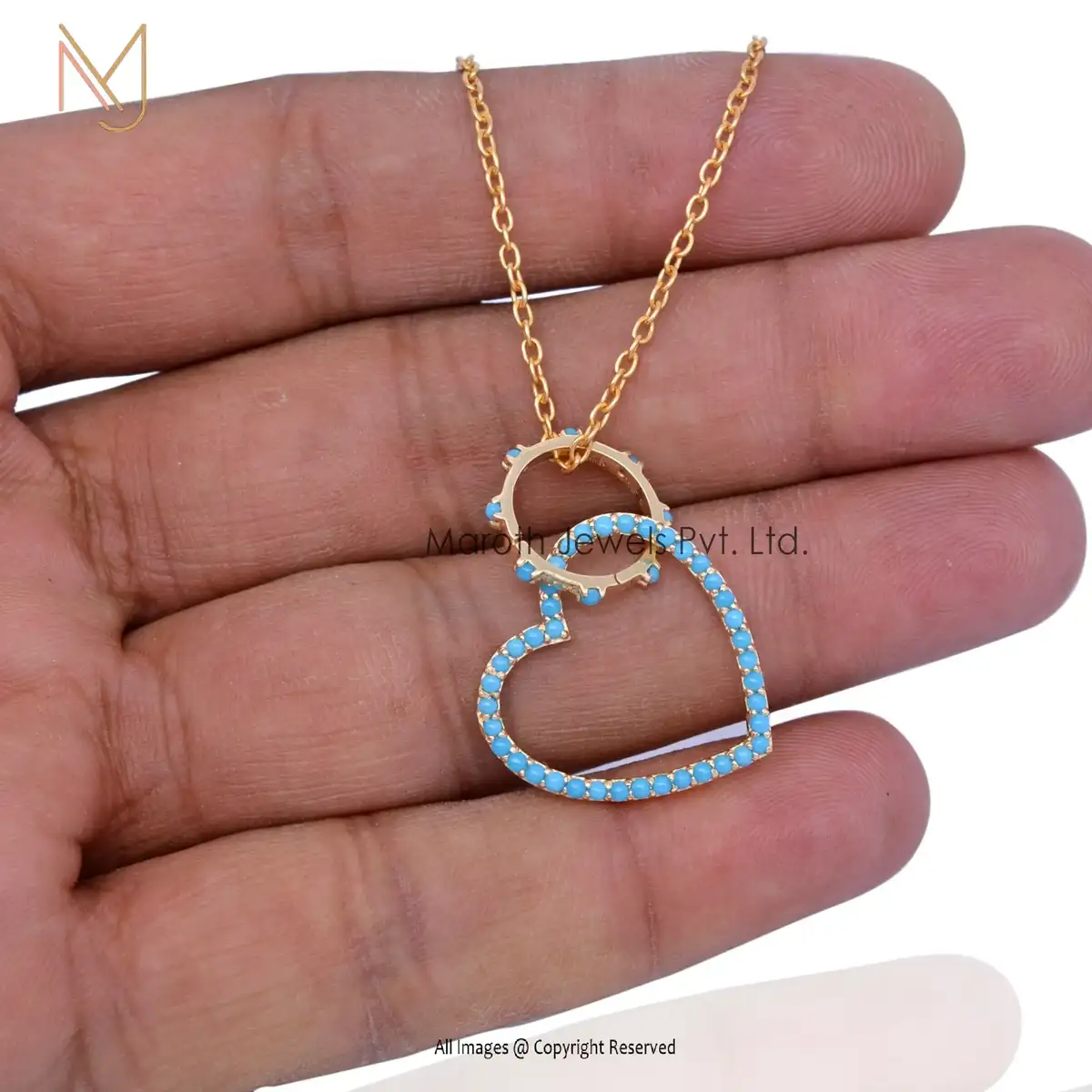 925 Sterling Silver Yellow Gold Plated Turquoise Gemstone Round Charm Holder Jewelry USA