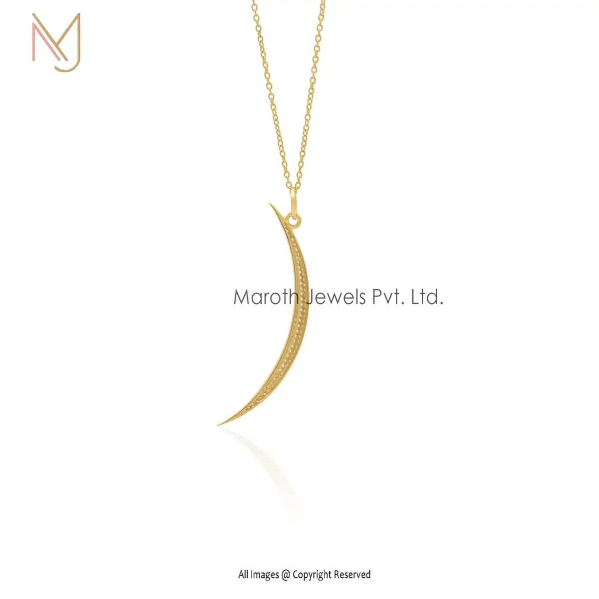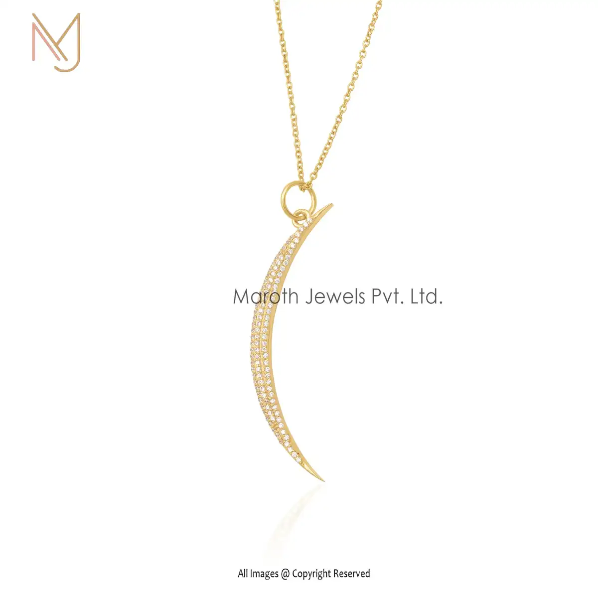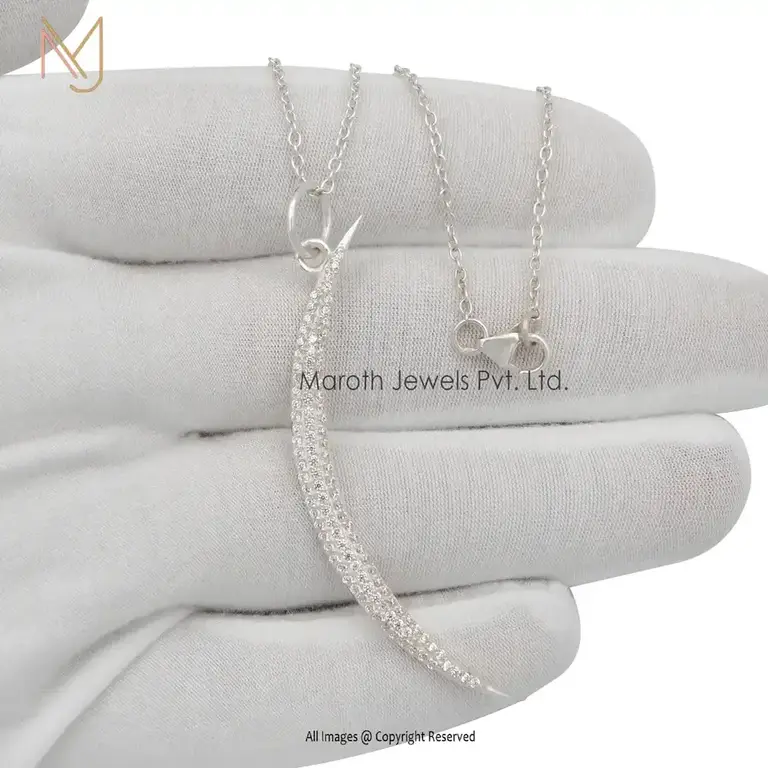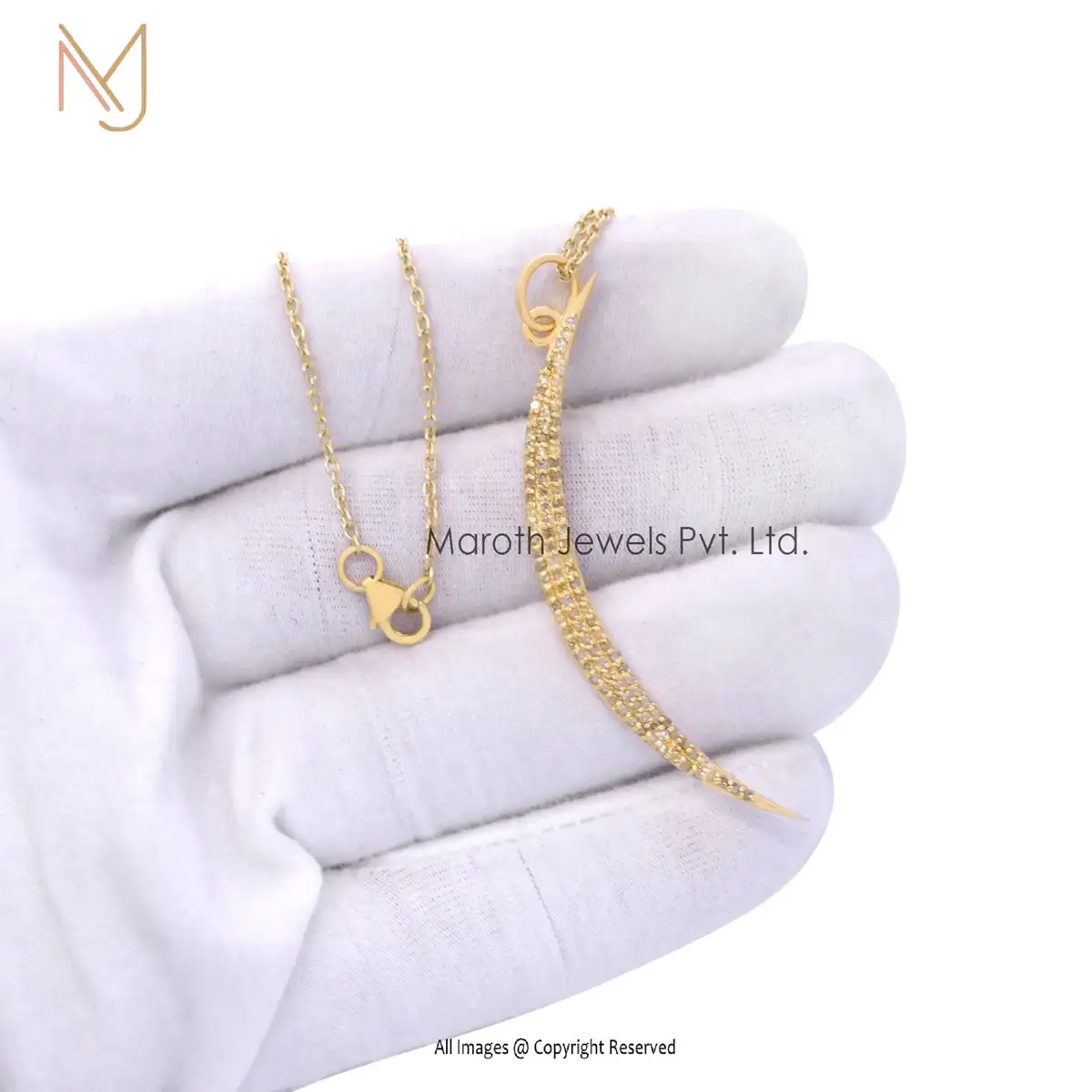 925 Sterling Silver Yellow Gold Plated White CZ Half Moon Pendant Jewelry Supplier