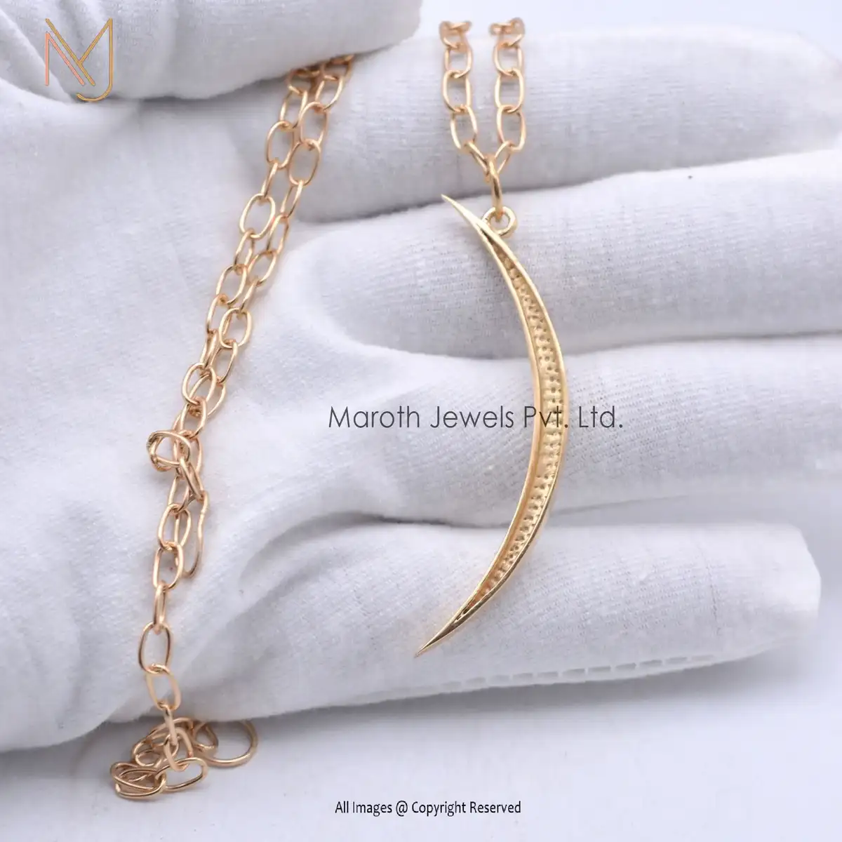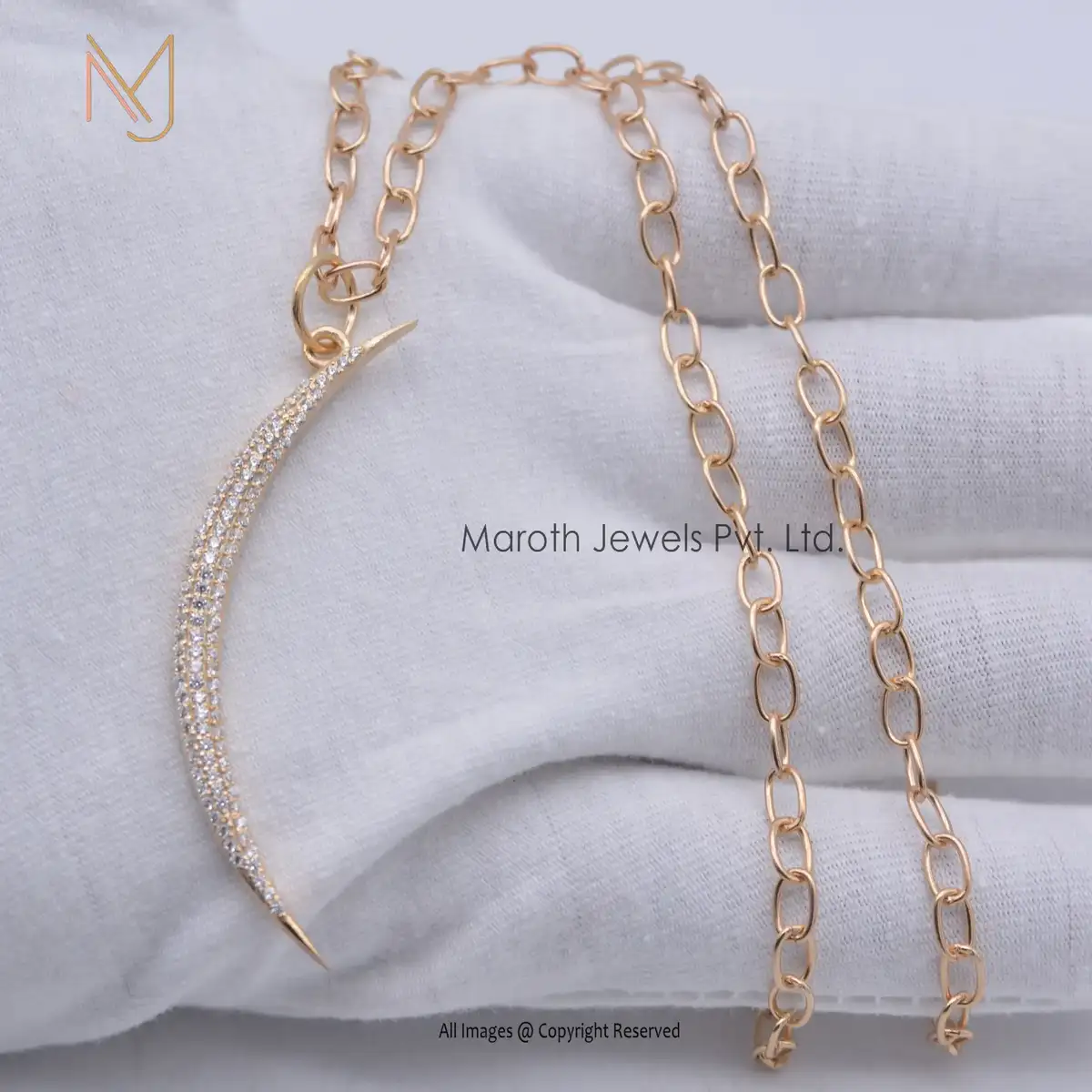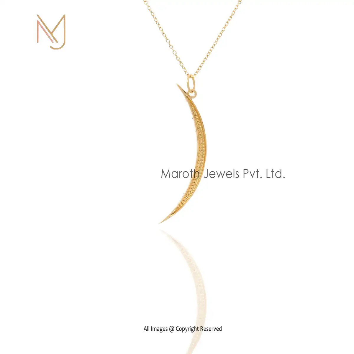 925 Sterling Silver Yellow Gold Plated White CZ Half Moon Pendant Jewelry Supplier