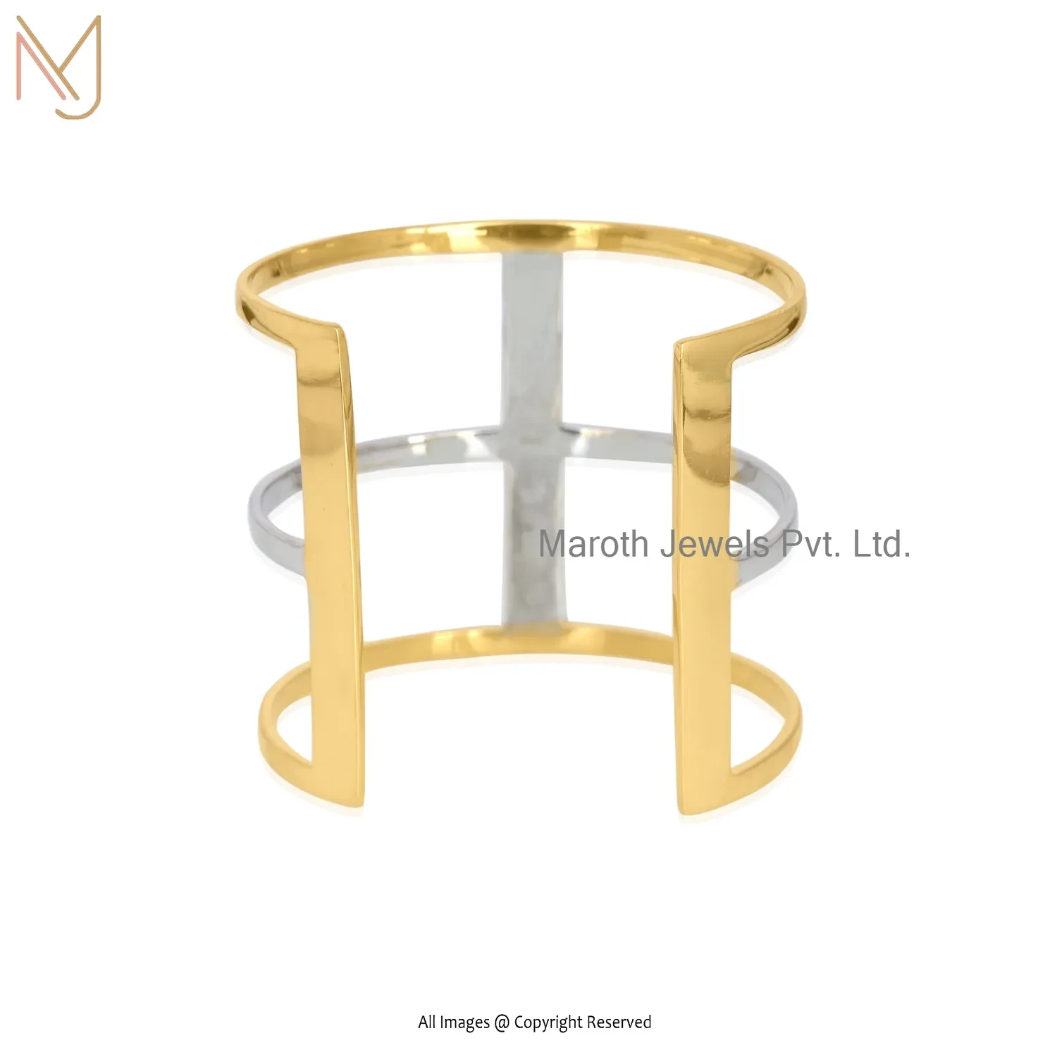 925 Sterling Silver Yellow & White Gold Plated Cuff Bangle Manfacturer