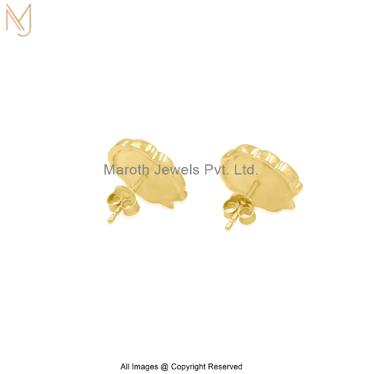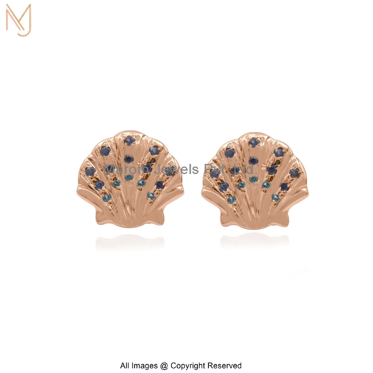 9K Yellow Gold Blue Sapphire Gemstone Shell Stud Earring Custom Jewelry