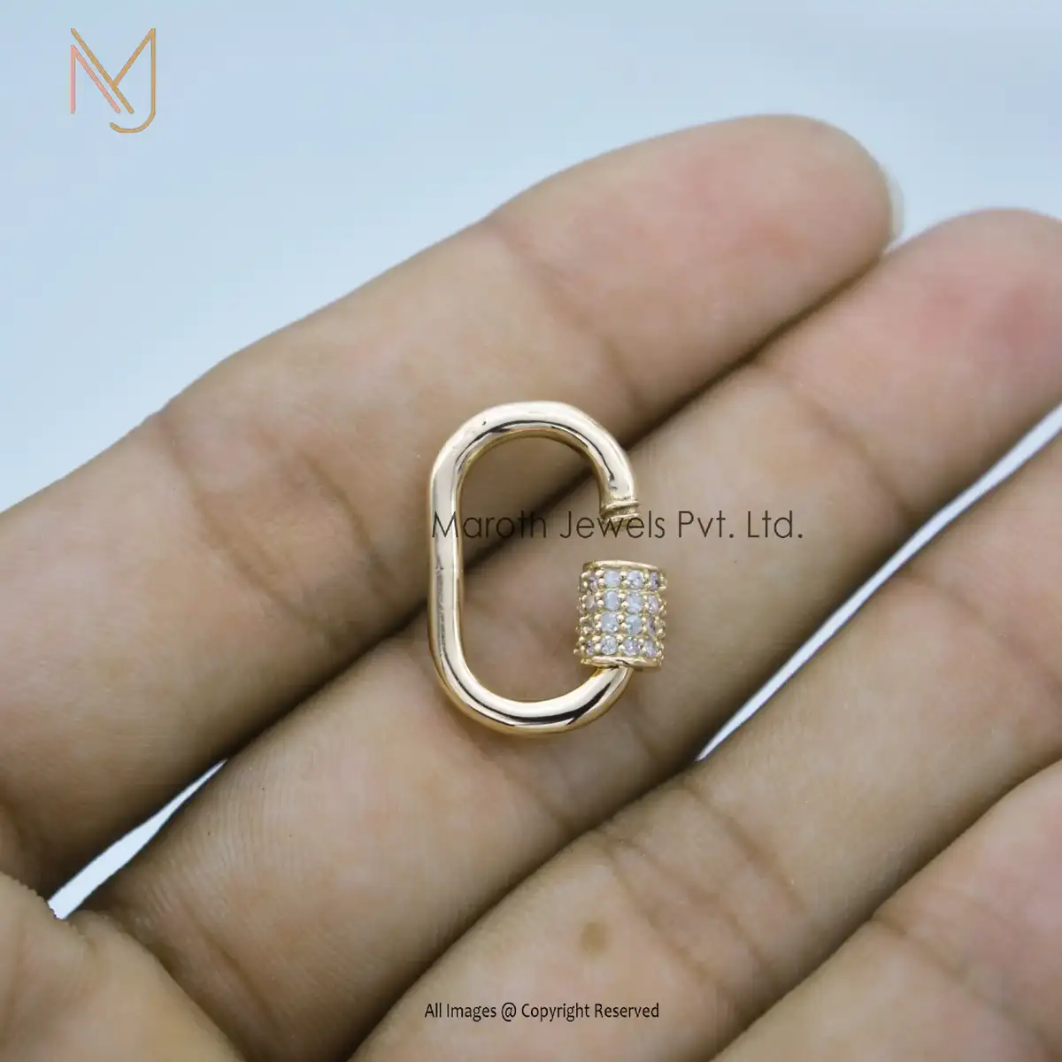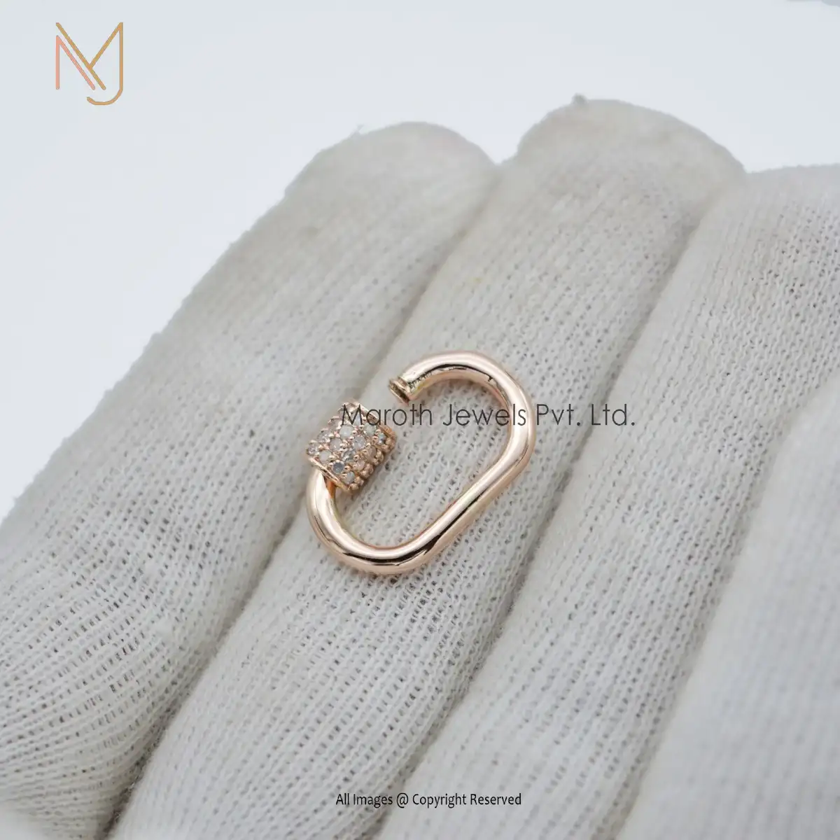 private Label 14K Solid Rose Gold Pave Diamond Carabiner Baby Findings Lock