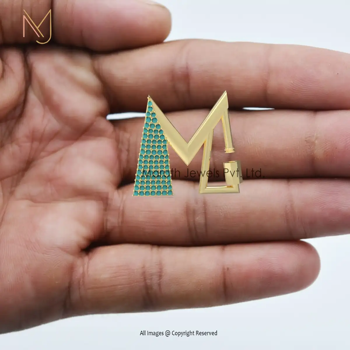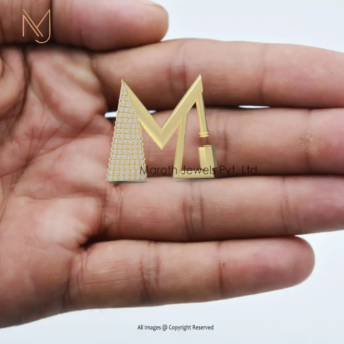 Private Label 14K Solid Yellow Gold Pave Cubic Zircon M Letter Carabiner Lock Finding