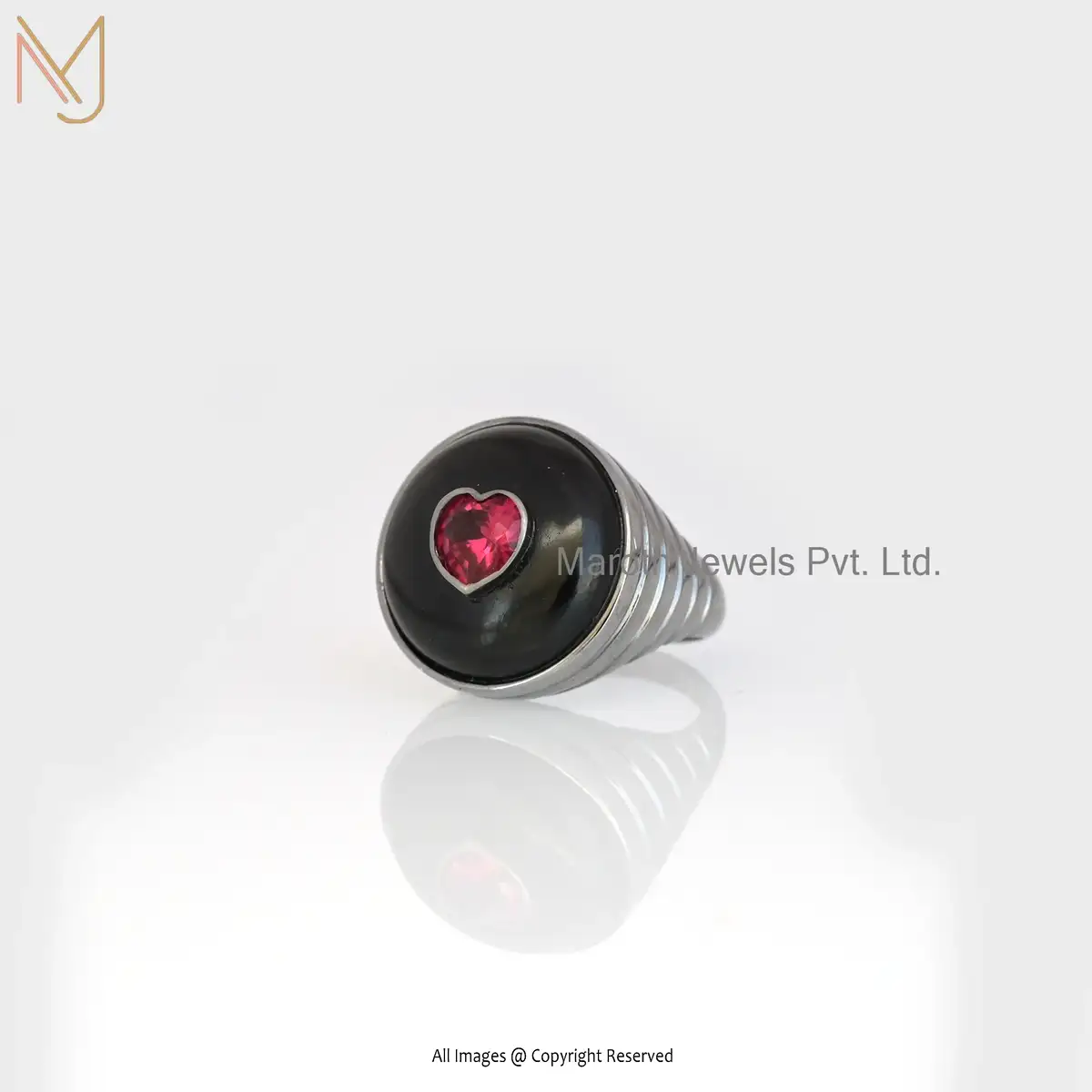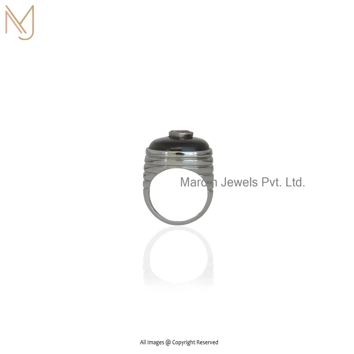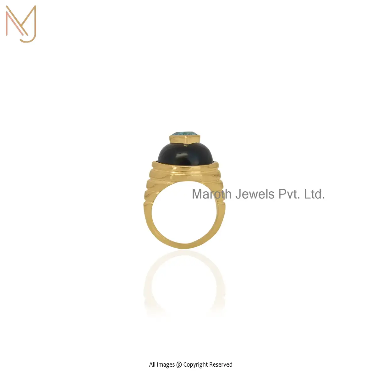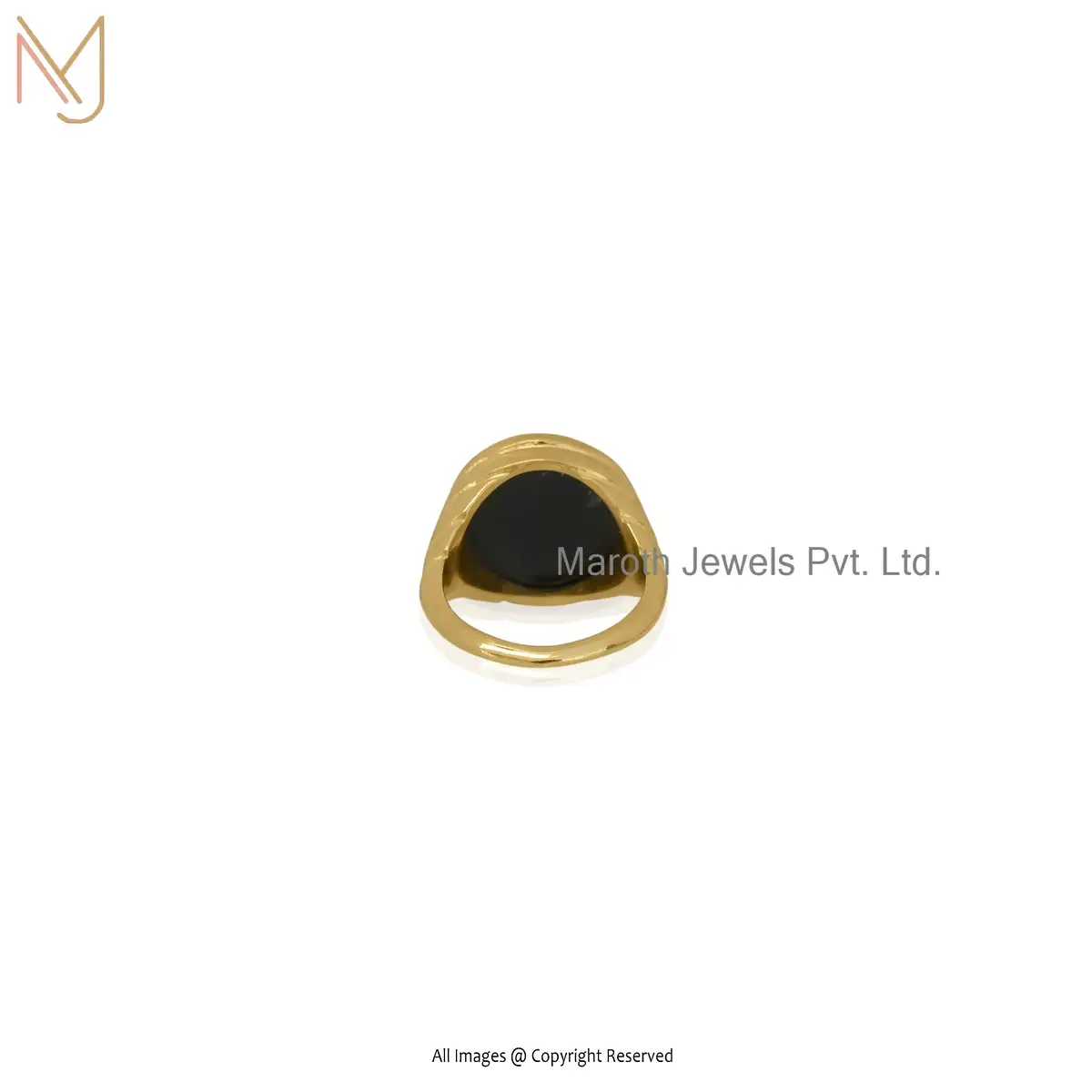 Private Label 14K Yellow Gold Black onyx And CZ Ring Jewelry