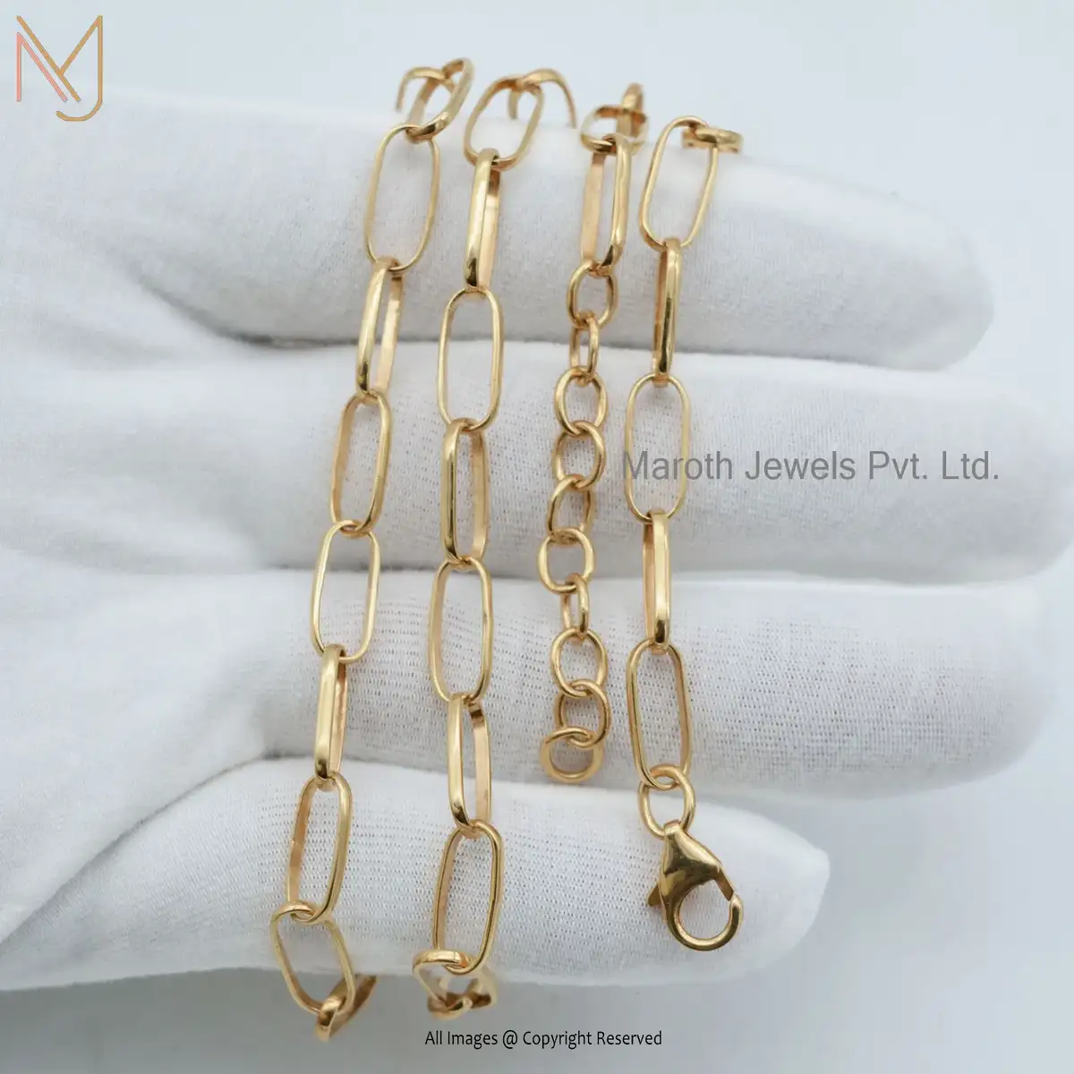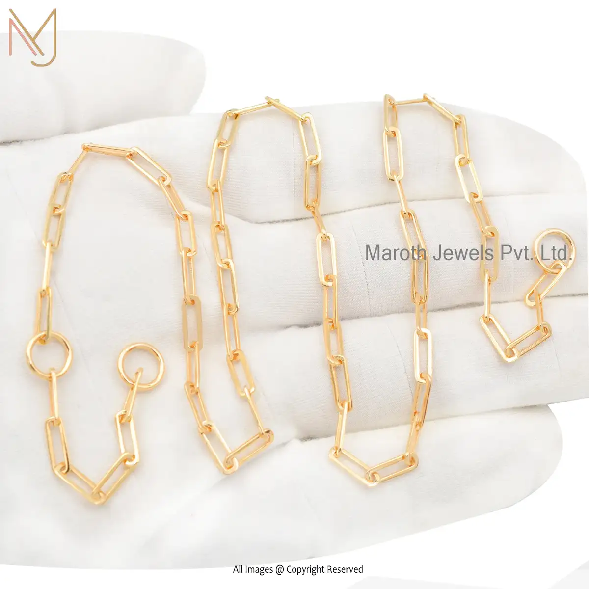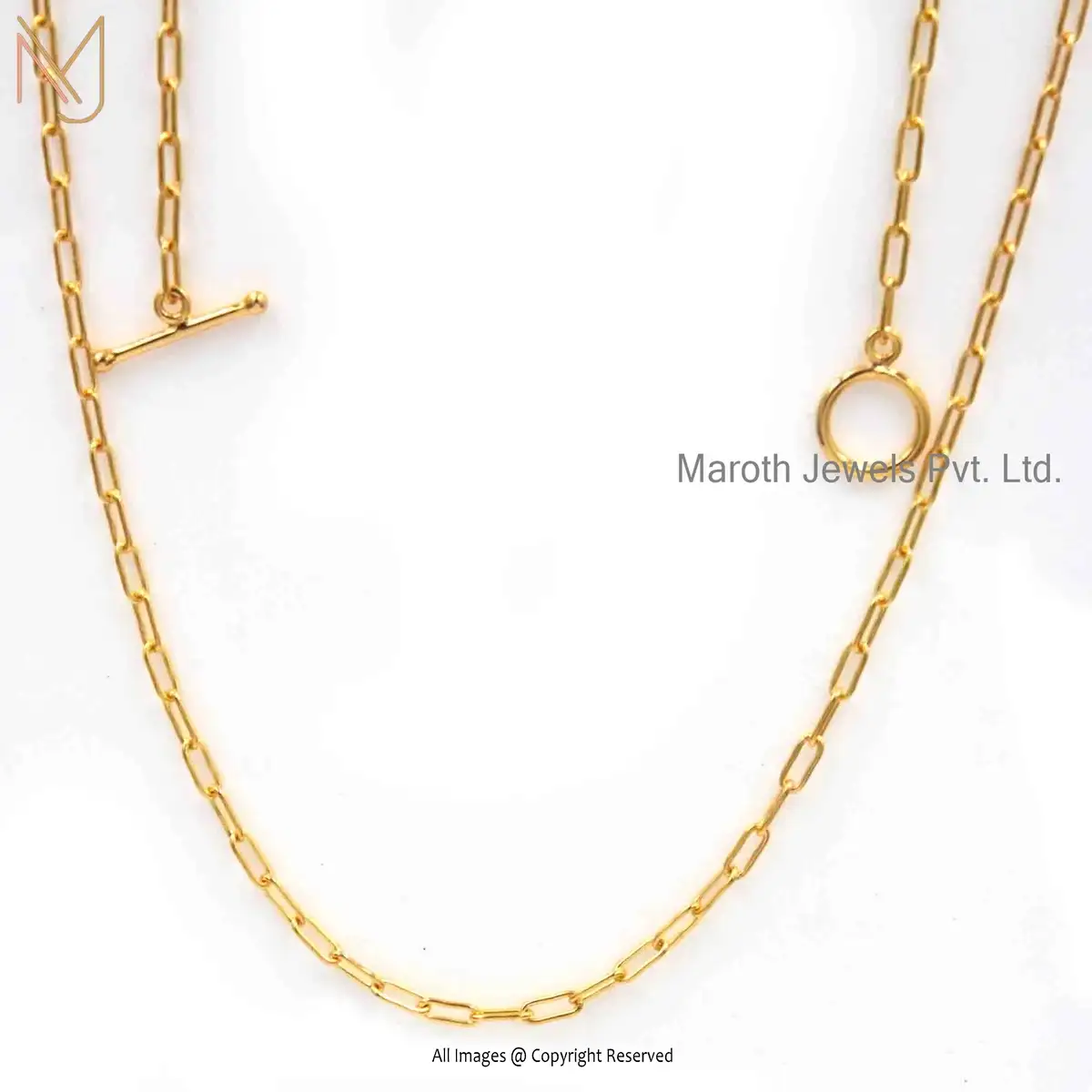 Private Label 14K Yellow Gold Carabiner Cable Chain Necklace Jewelry