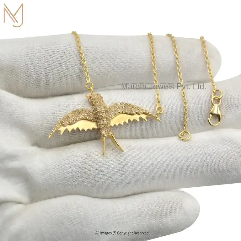 Private Label 14k Yellow Gold Diamond & Ruby Bird Pendant Necklace