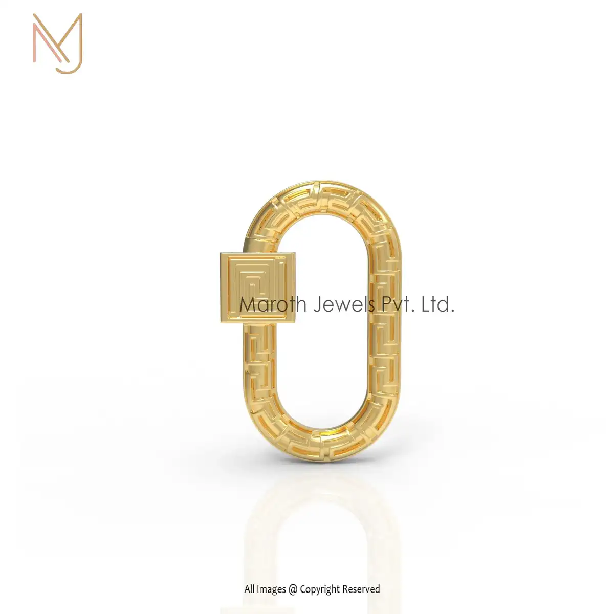 Private Label 14K Yellow Gold Engraved Oval Designs Carabiner Lock Jewelry