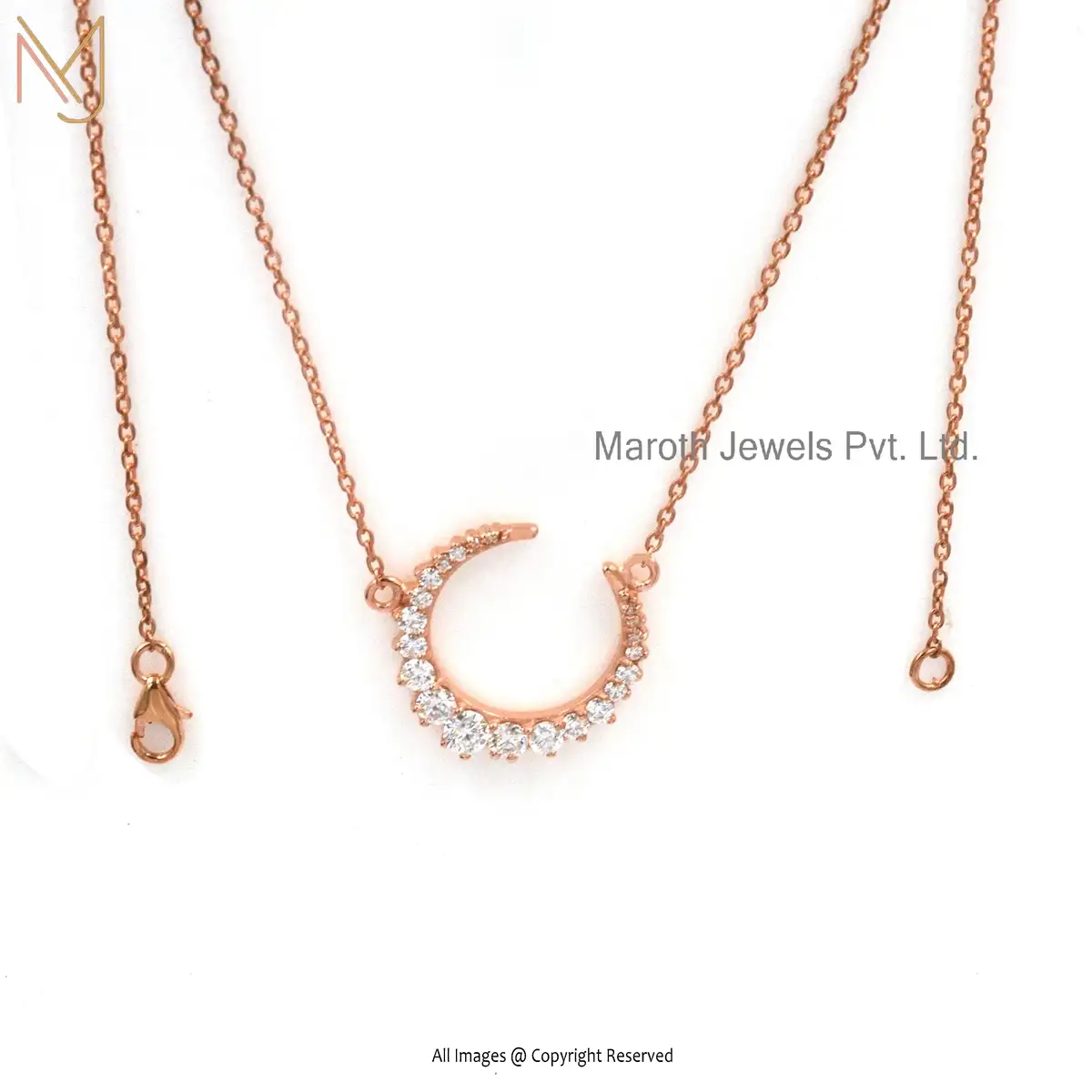 Private Label 14K Yellow Gold Moissanite Crescent Moon Necklace Jewelry