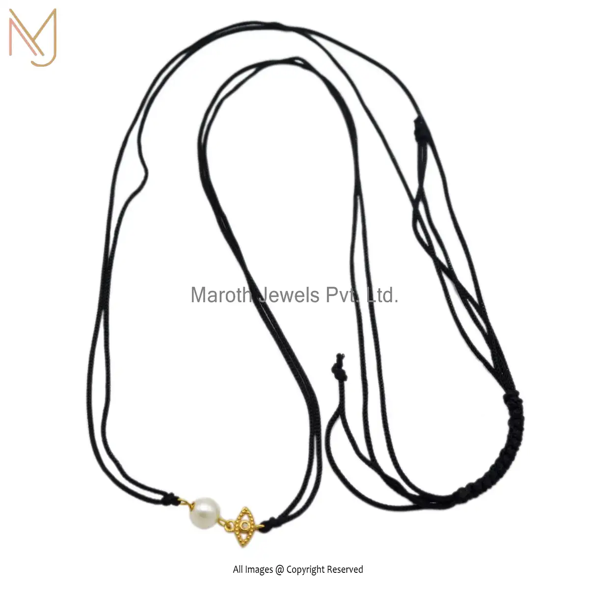 Private Label 14K Yellow Gold Pave Diamond Pearl Handmade Jewelry