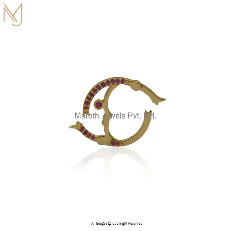 Private Label 14K Yellow Gold Pink Sapphire Moon Charm Enhancer