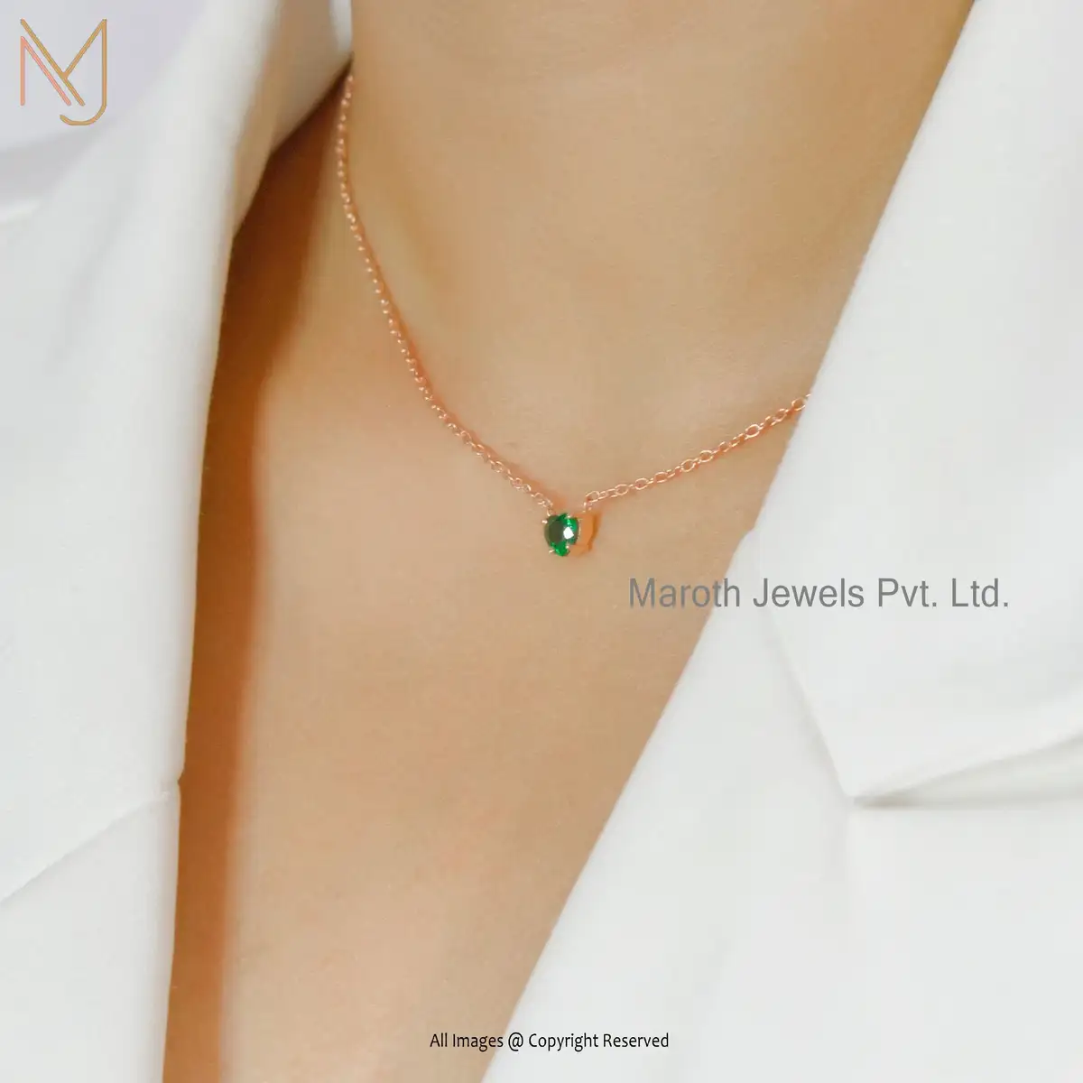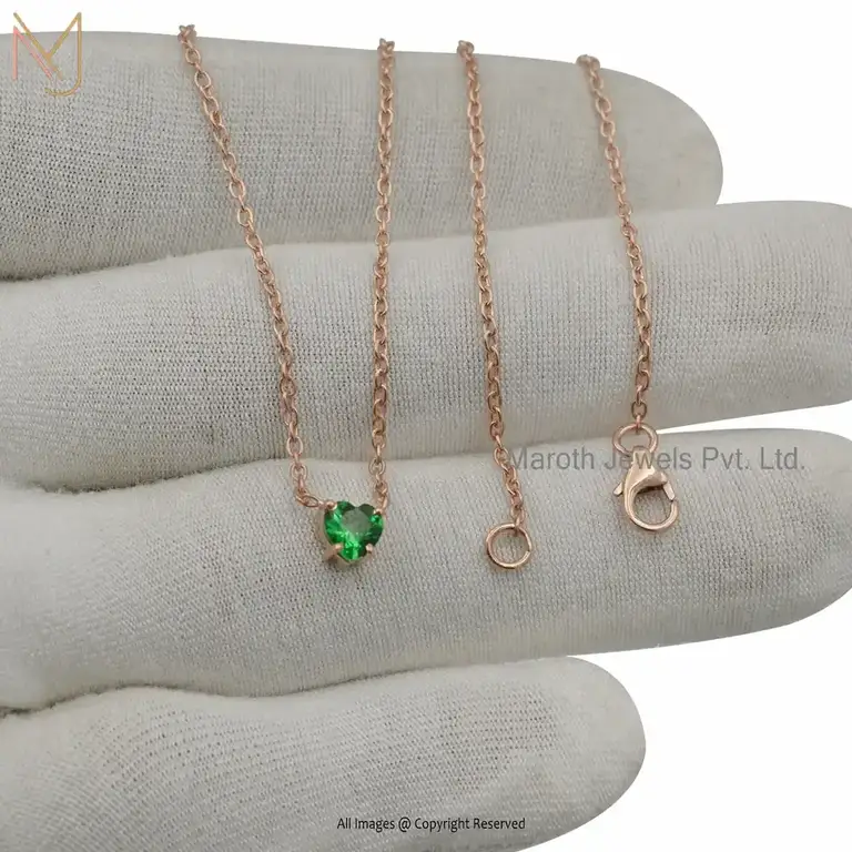 Private Label 14k Yellow Gold Synthetic Emerald Heart Shape Necklace