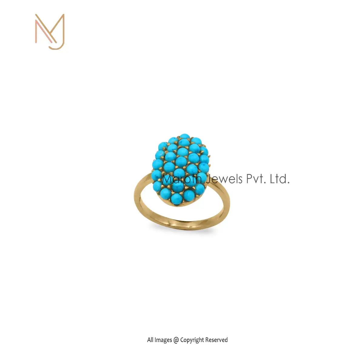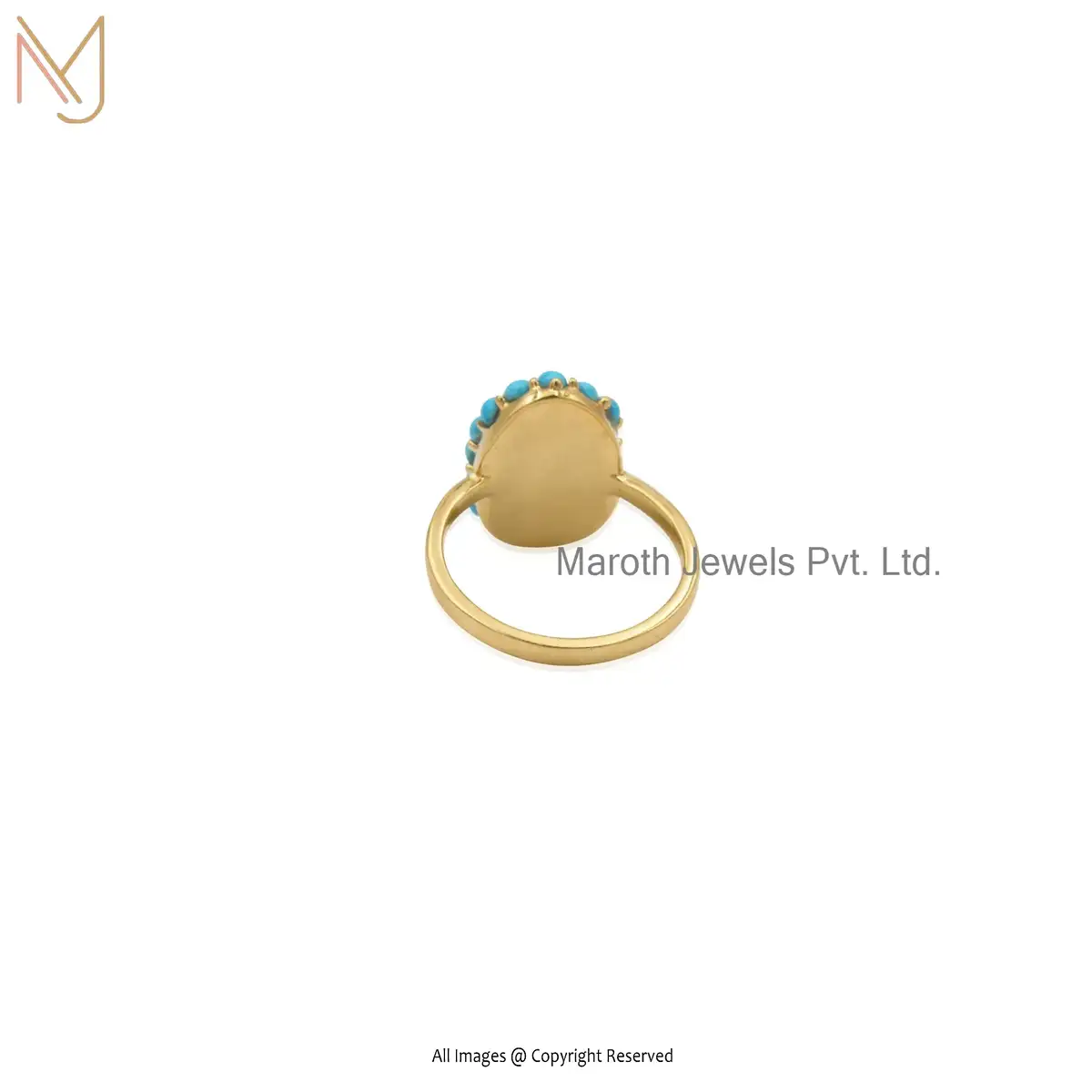 Private Label 14K Yellow Gold Turquoise Gemstone Ring Jewelry