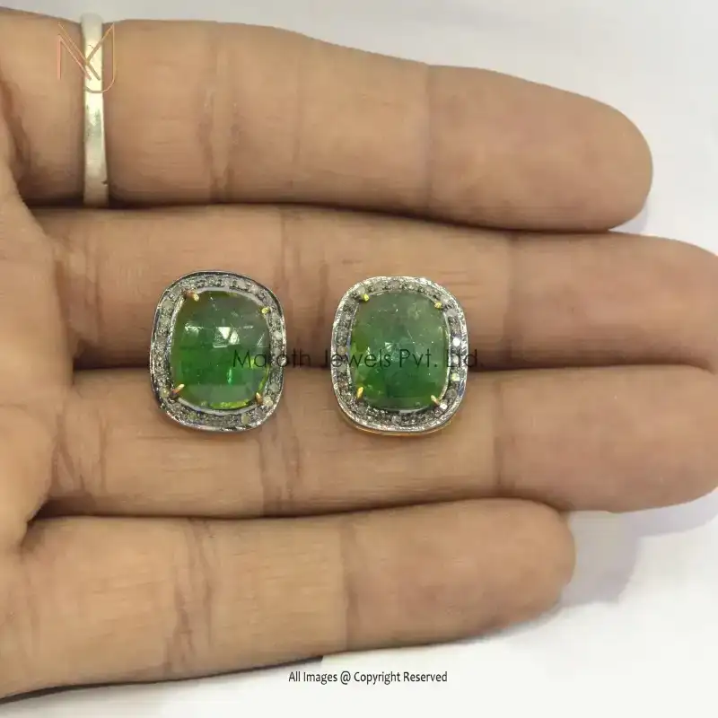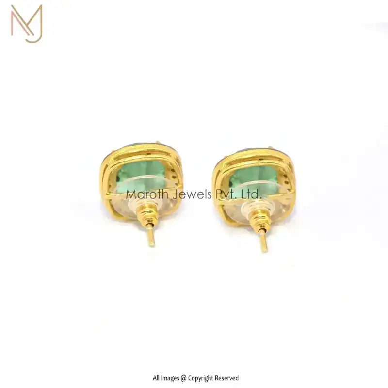 Private Label 925 Silver Pave Diamond Emerald Gemstone Studs Earrings Jewelry