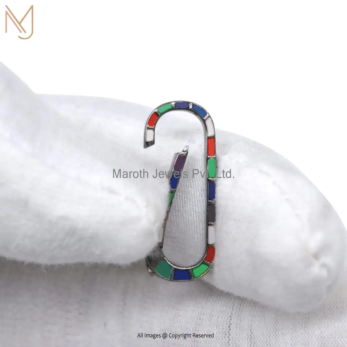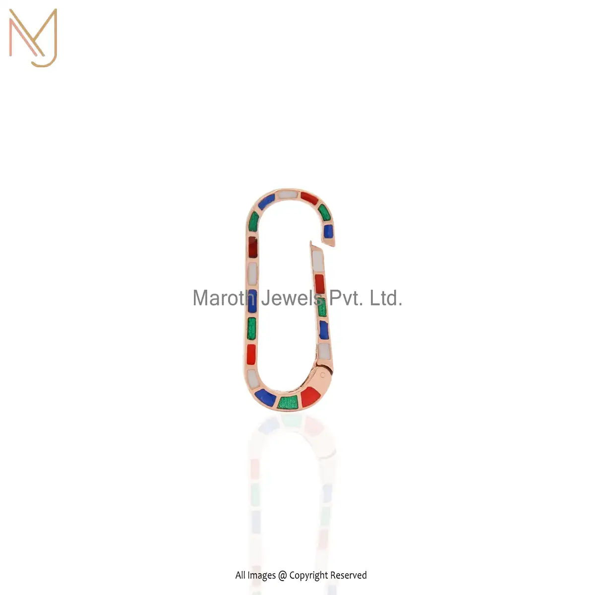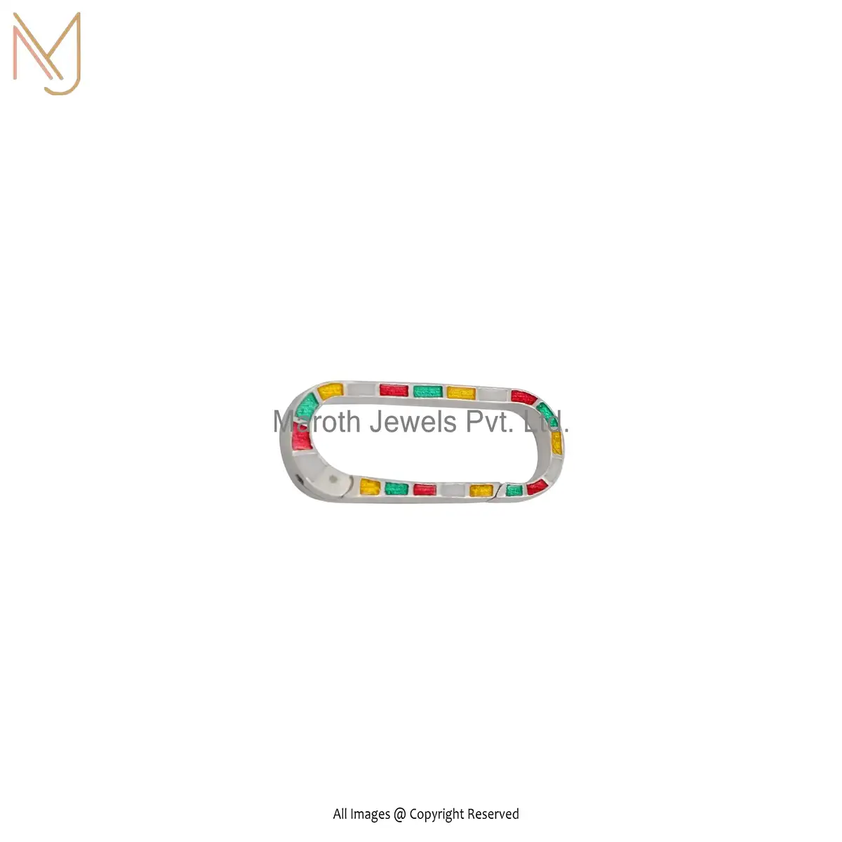 Private Label 925 Silver Yellow Gold Multi Color Enamel Push Lock