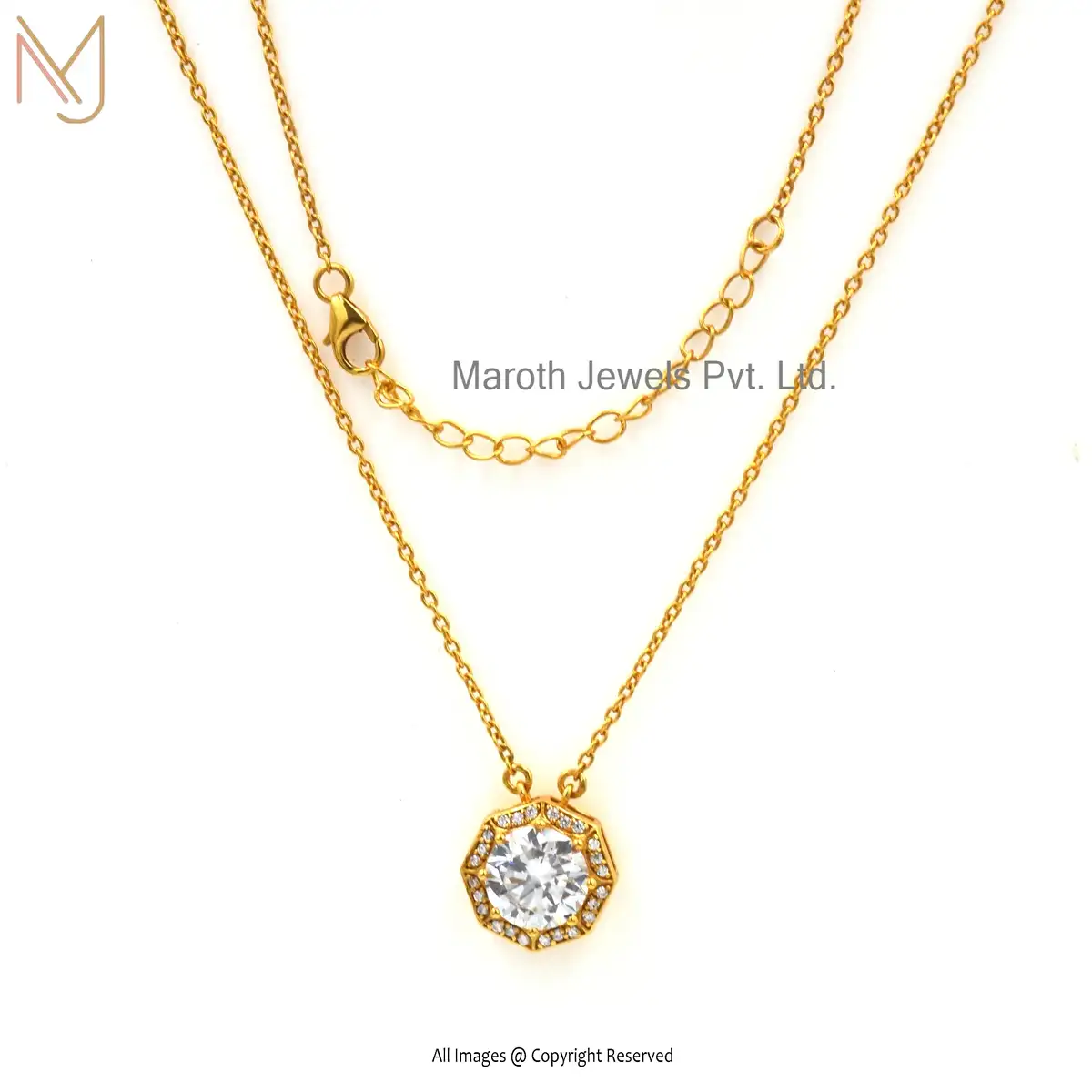 Private Label 925 Silver Yellow Gold Plated Cubic Zircon Necklace Jewelry