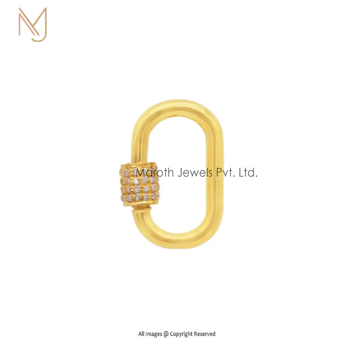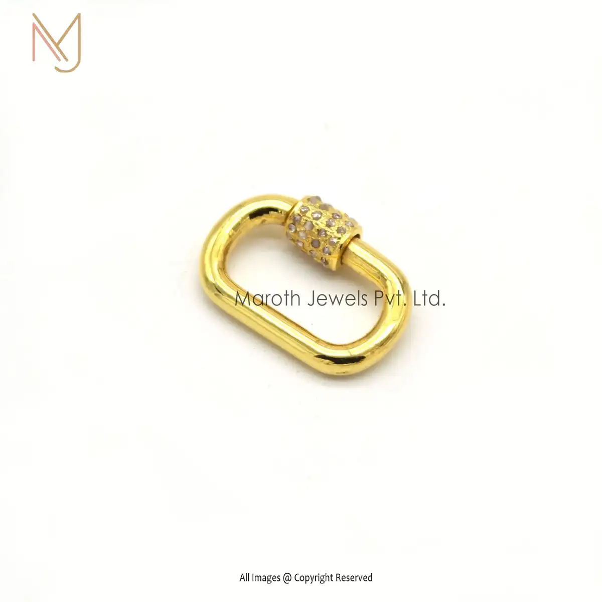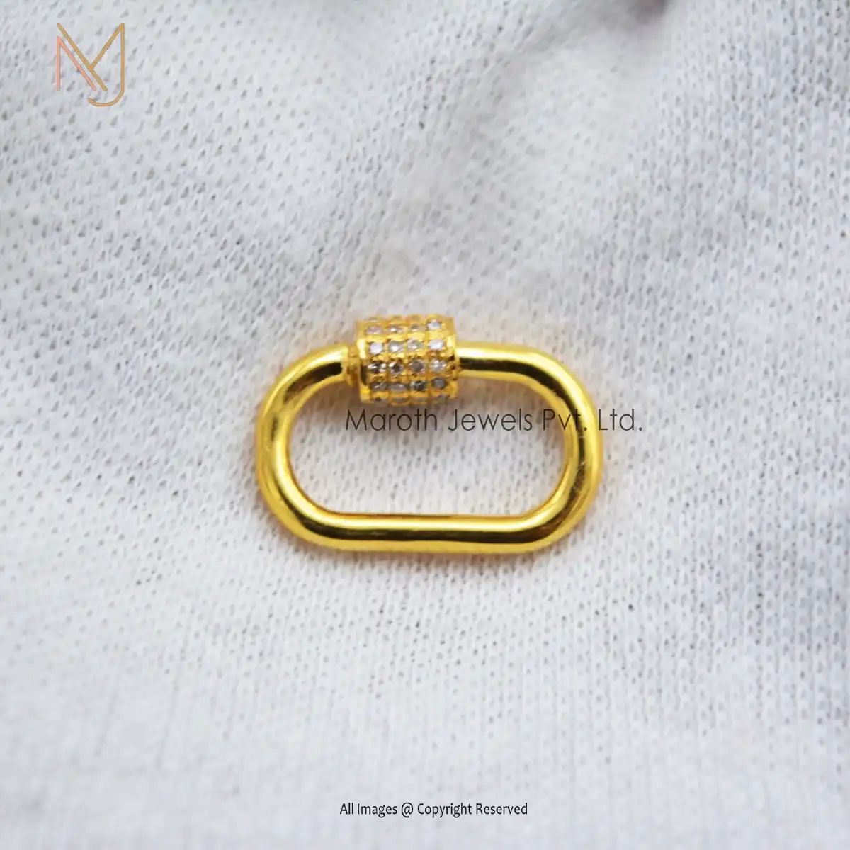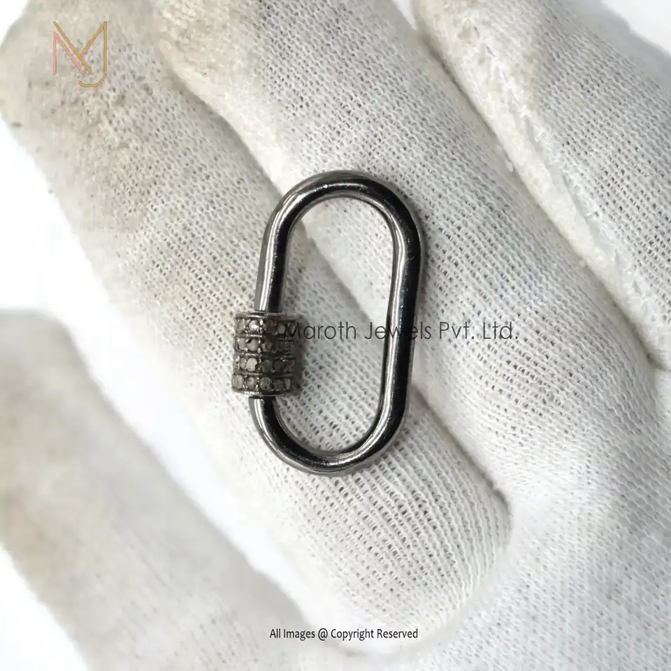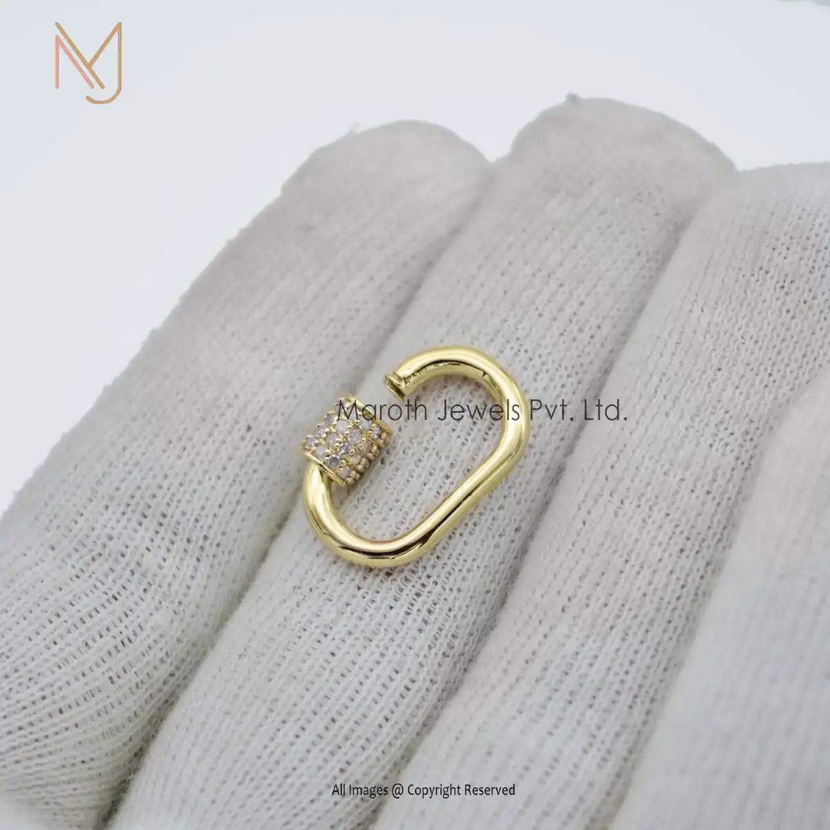 Private Label 925 Silver Yellow Gold Vermeil Pave Diamond Carabiner Baby Findings Lock