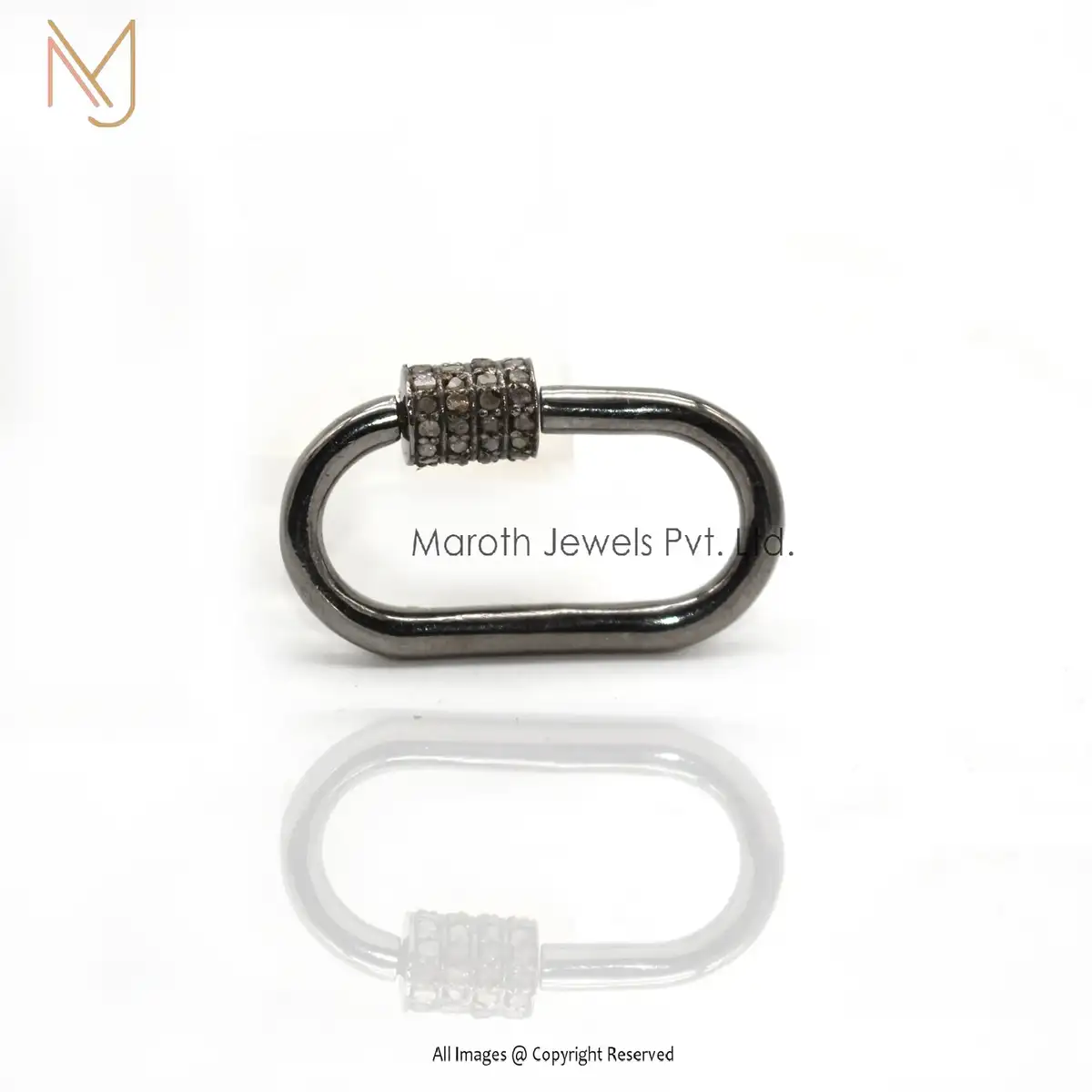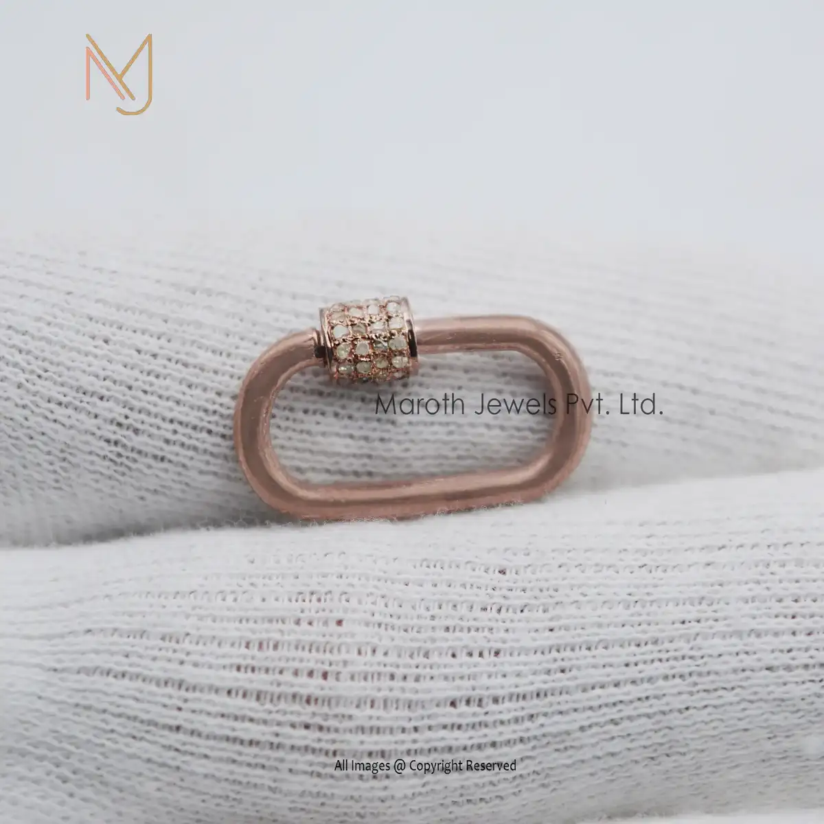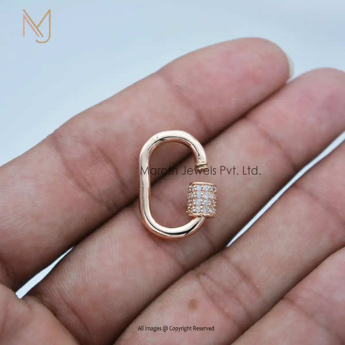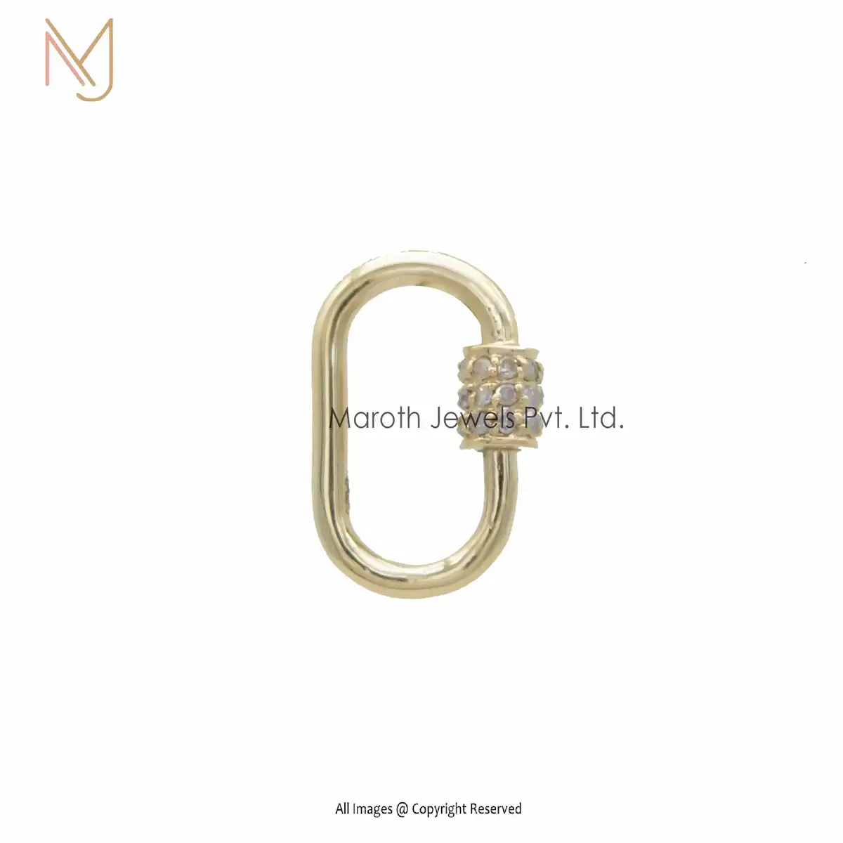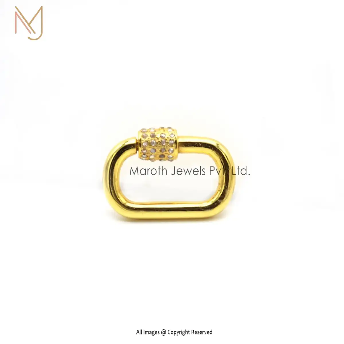 Private Label 925 Silver Yellow Gold Vermeil Pave Diamond Carabiner Baby Findings Lock