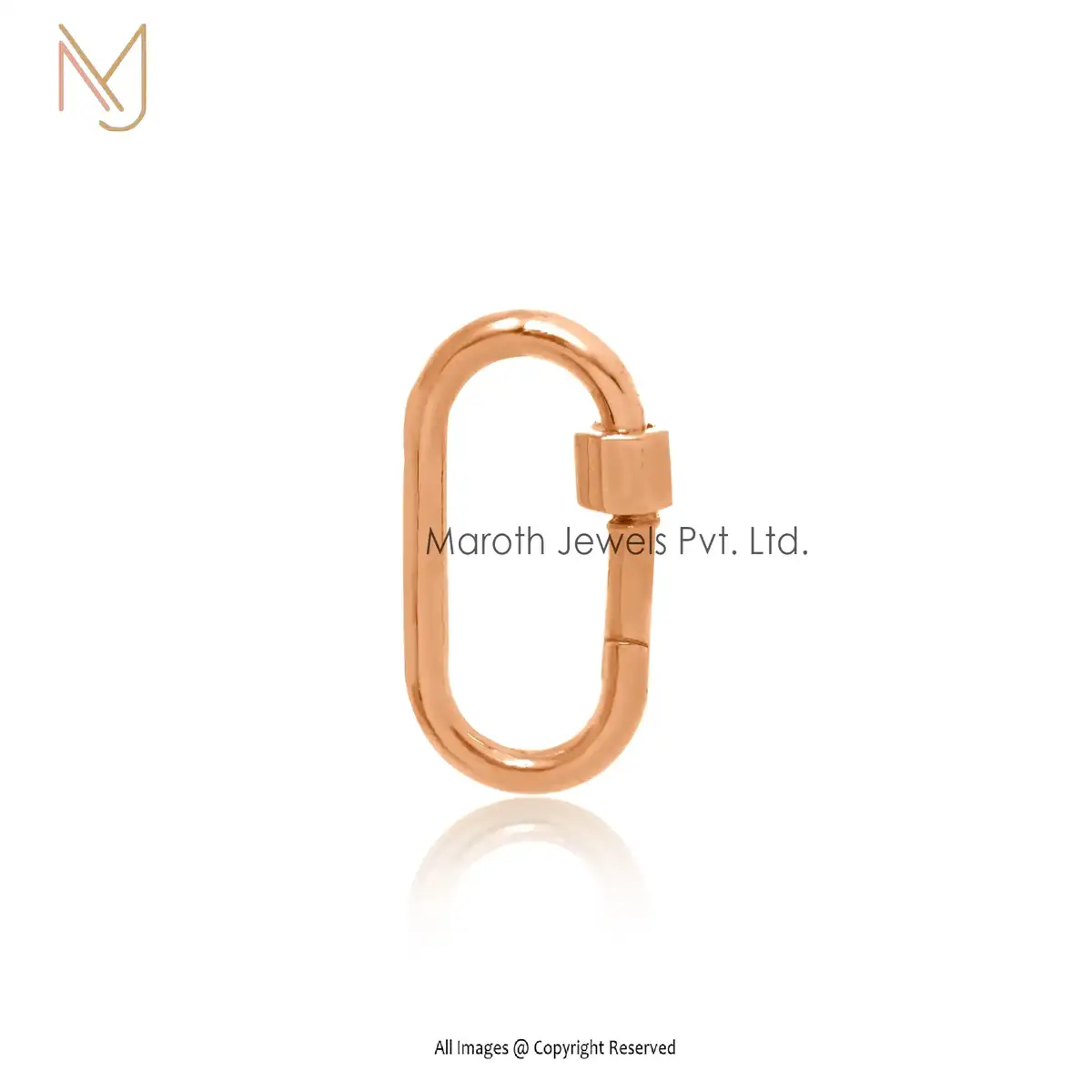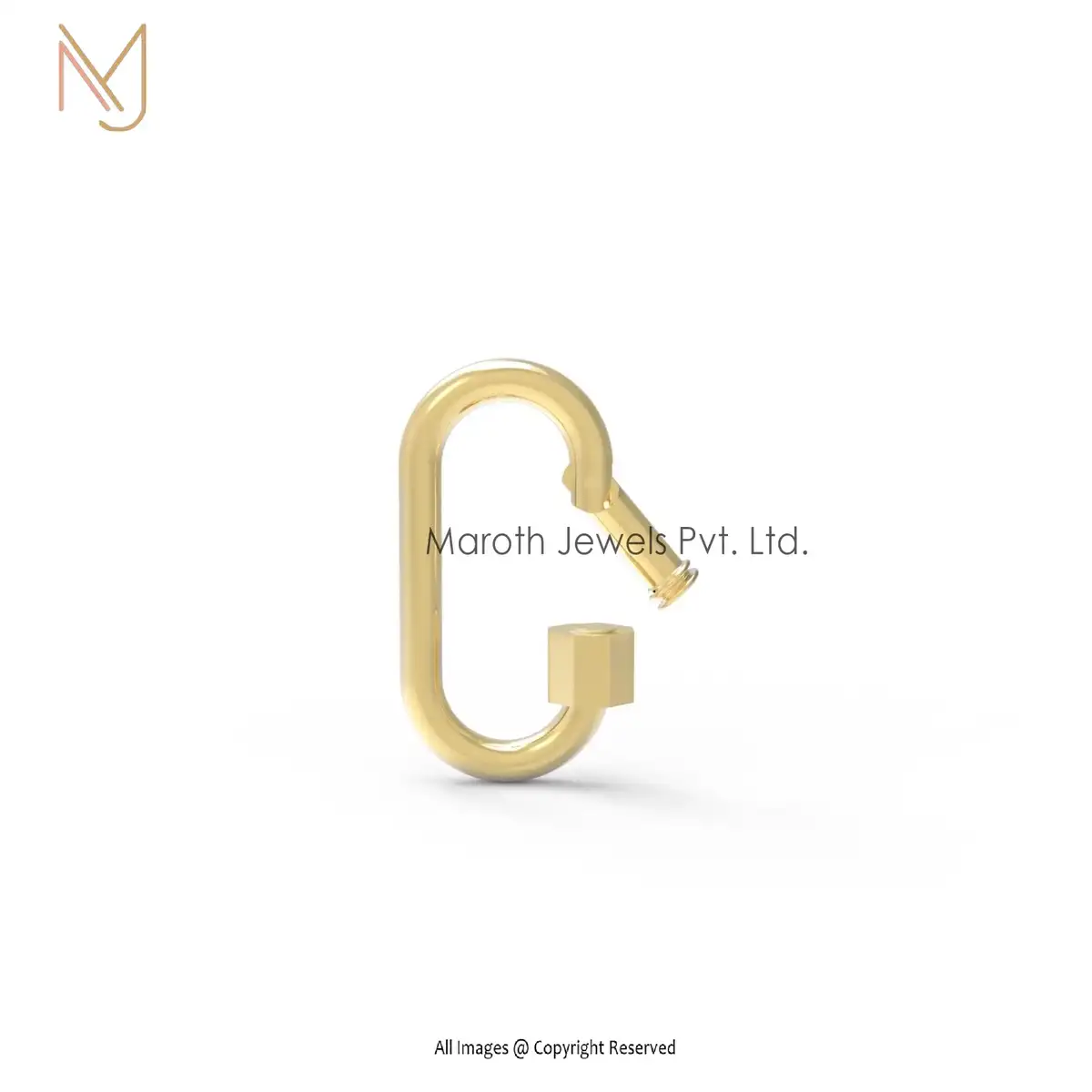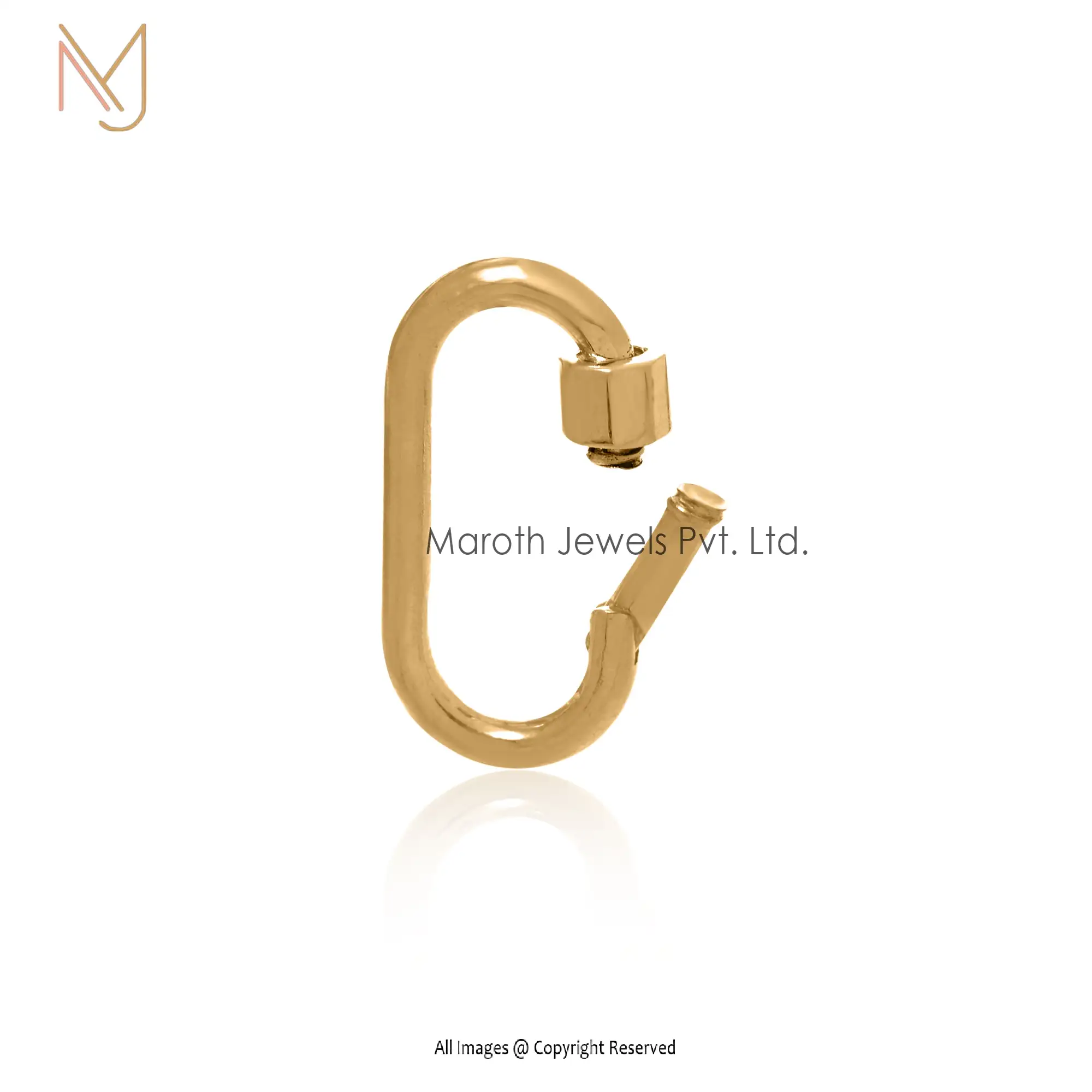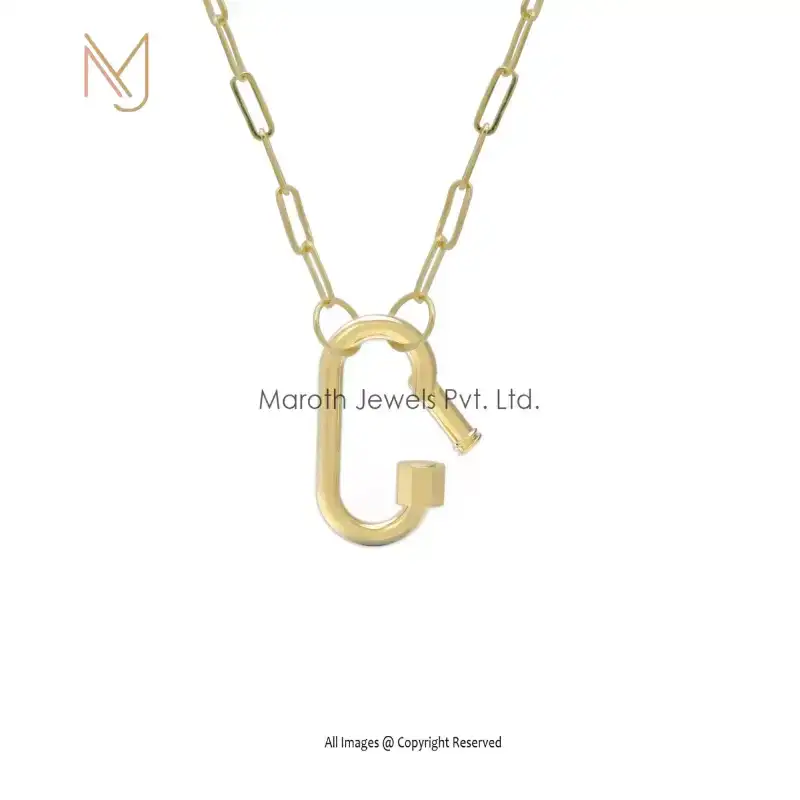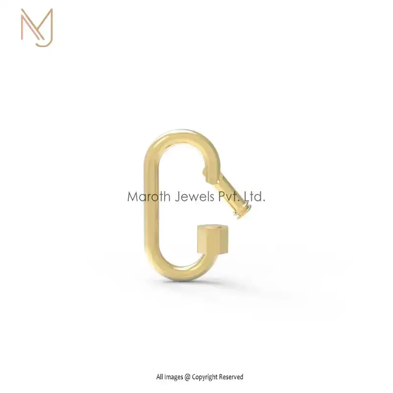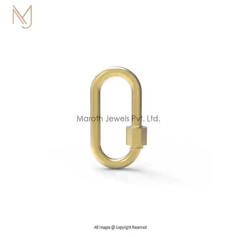 Private Label 925 Yellow Gold Plated Oval Charm Enhancer Carabiner Lock