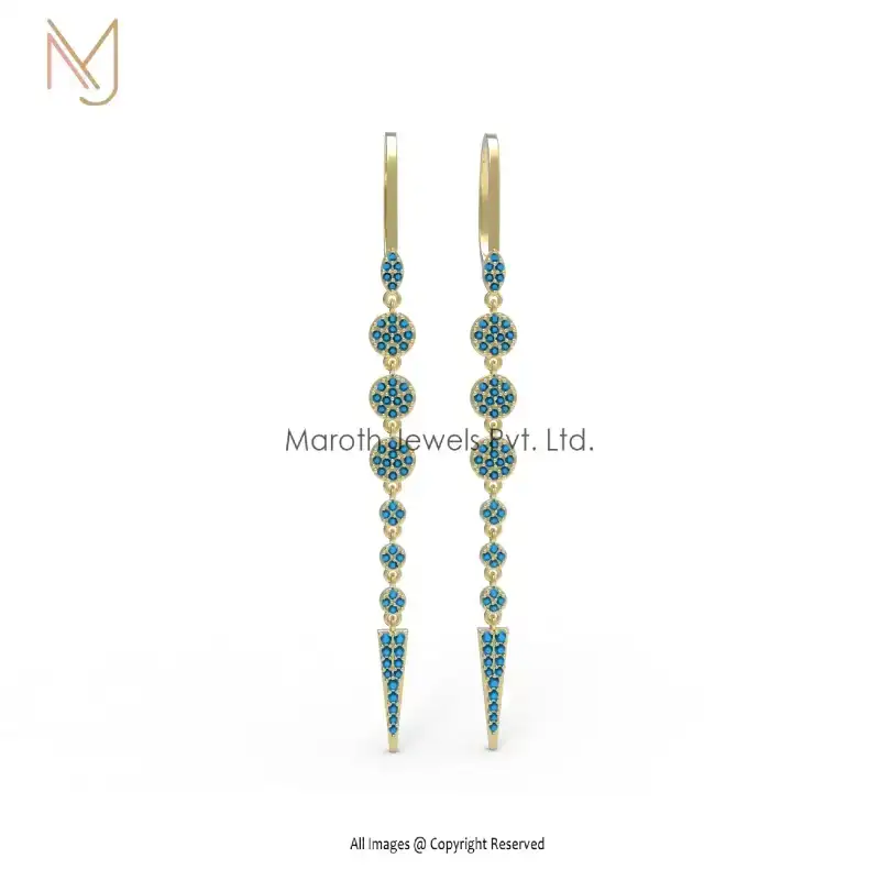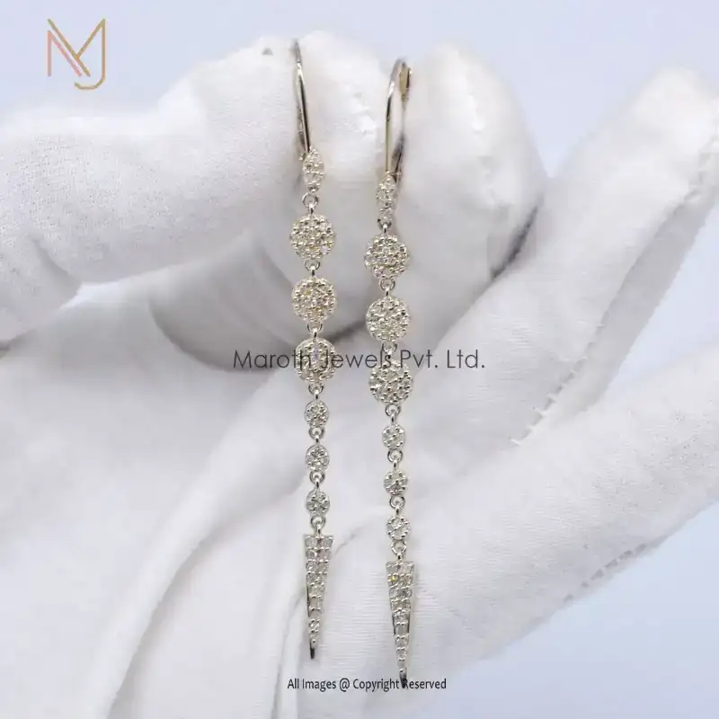 Private Label 925 Yellow Gold Plated With White Diamond Clip Lock Drop Earrings