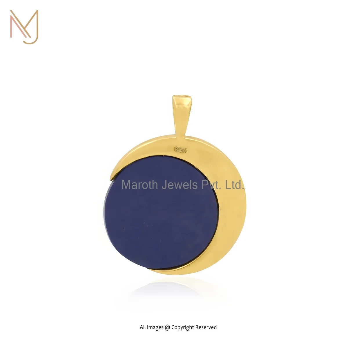 Private Lable 14K Soild Yellow Gold Lapiz Lazuli Cubic Zircon Star Moon Pendant