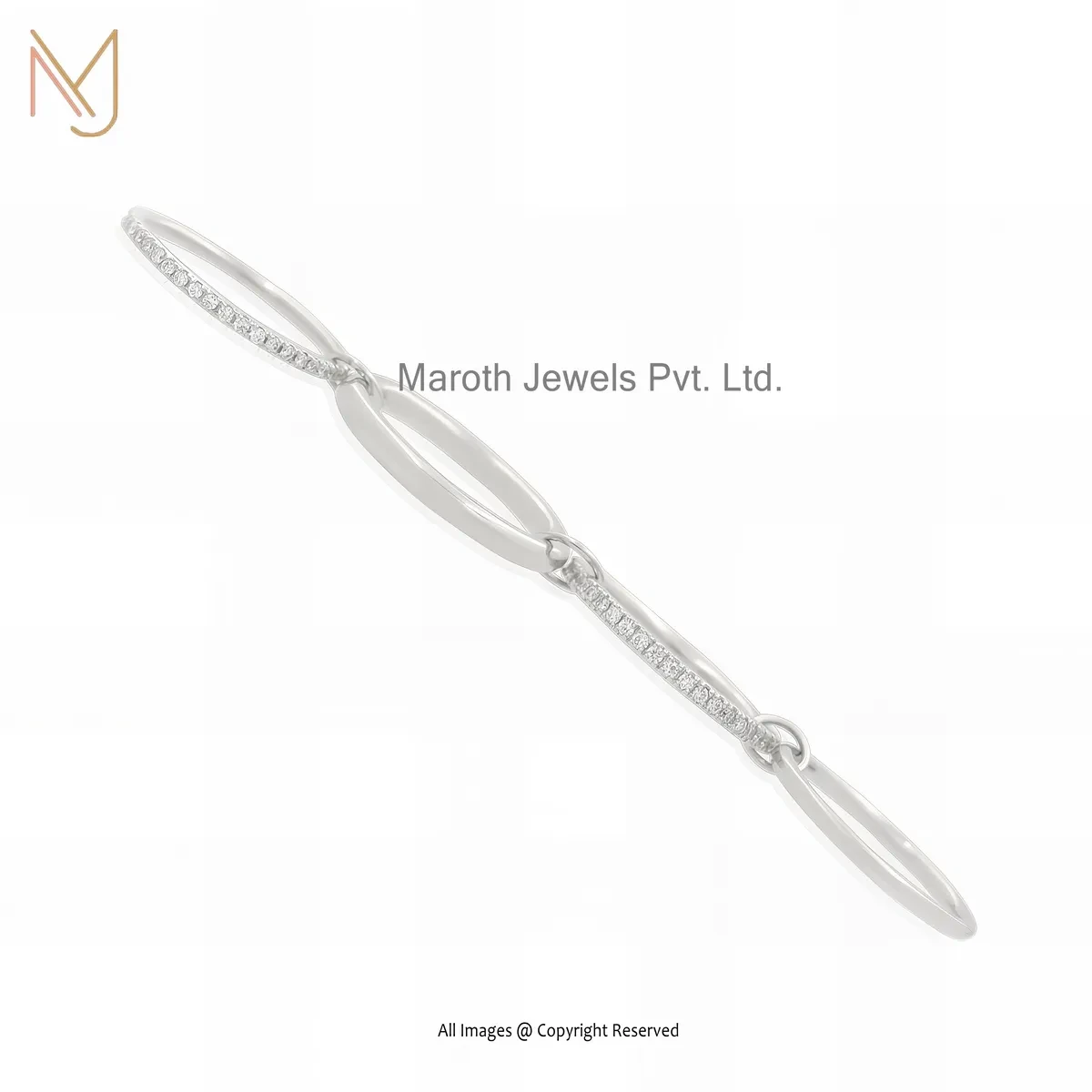 Private Lable 14K White Gold Cubic Zircon Connector Band Link Ring