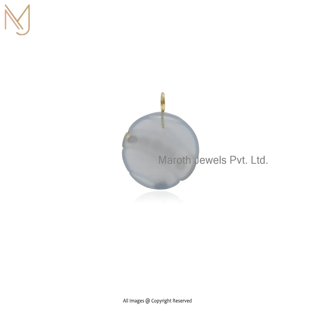 Private Lable 14K Yellow Gold Blue Chalcedony & Pink Cubic Zircon Ball Pendant