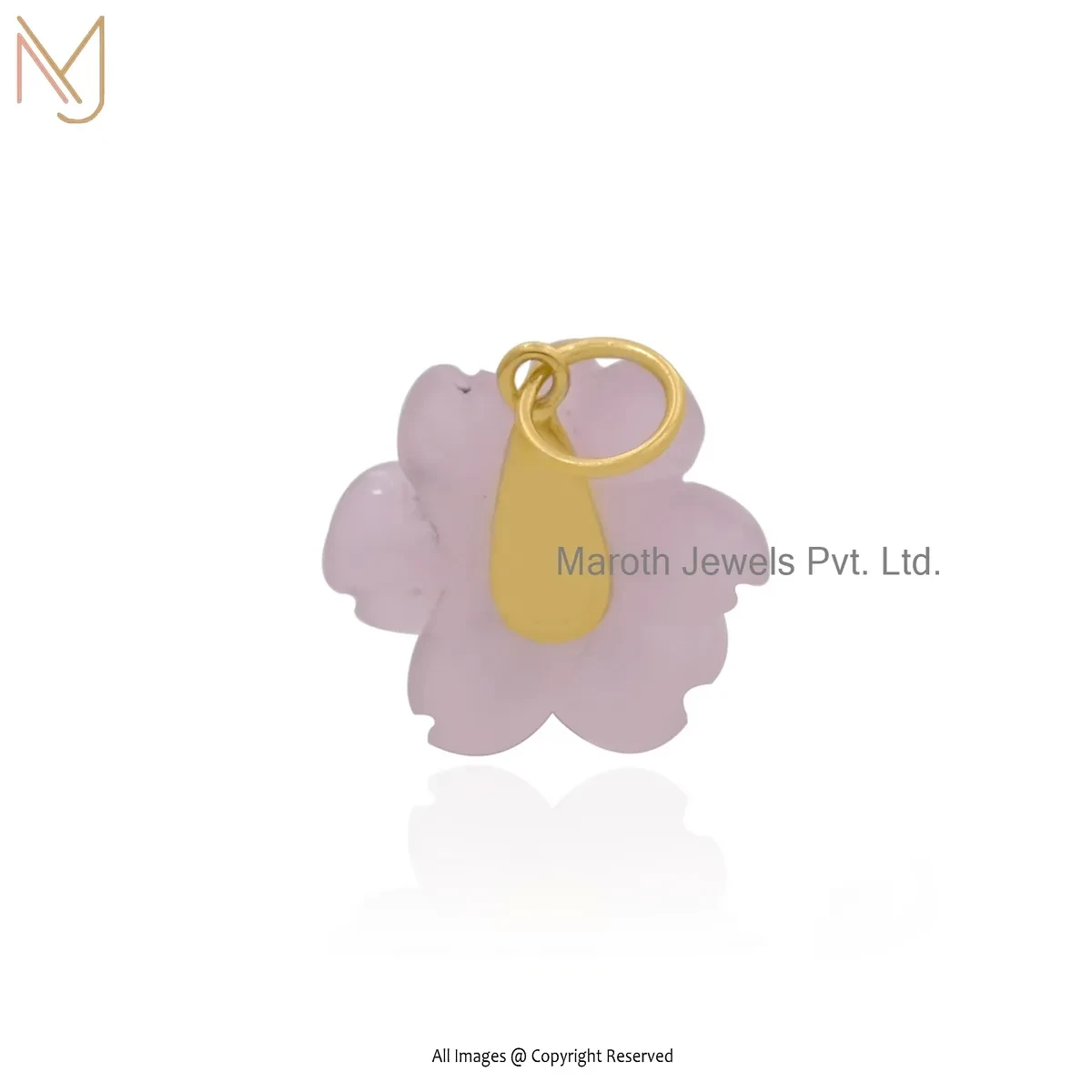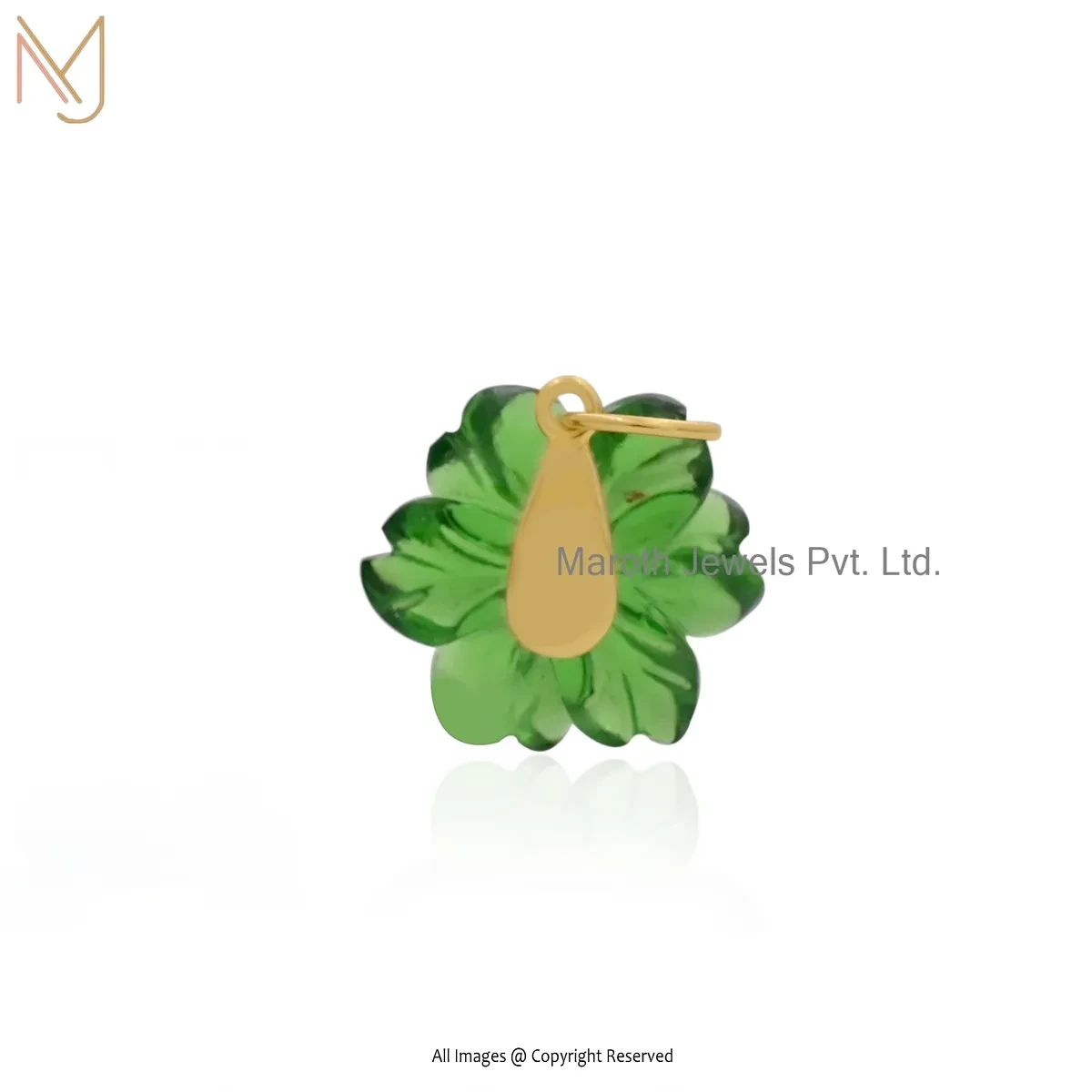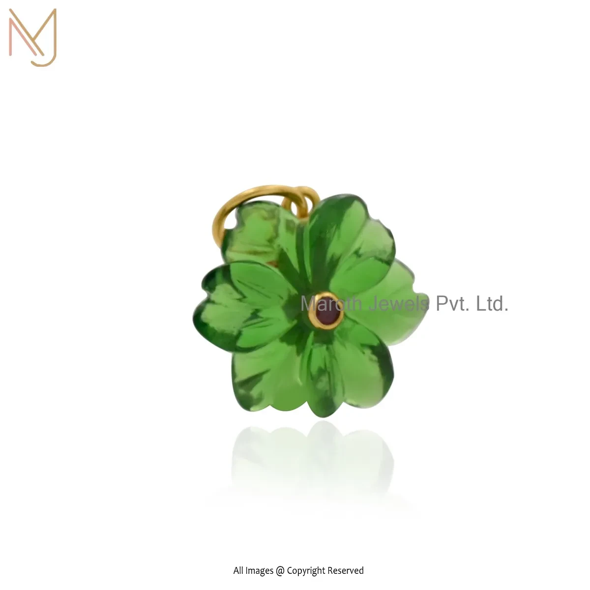 Private Lable 14K Yellow Gold Blue Quartz & Ruby Cubic Zircon Flower Pendant