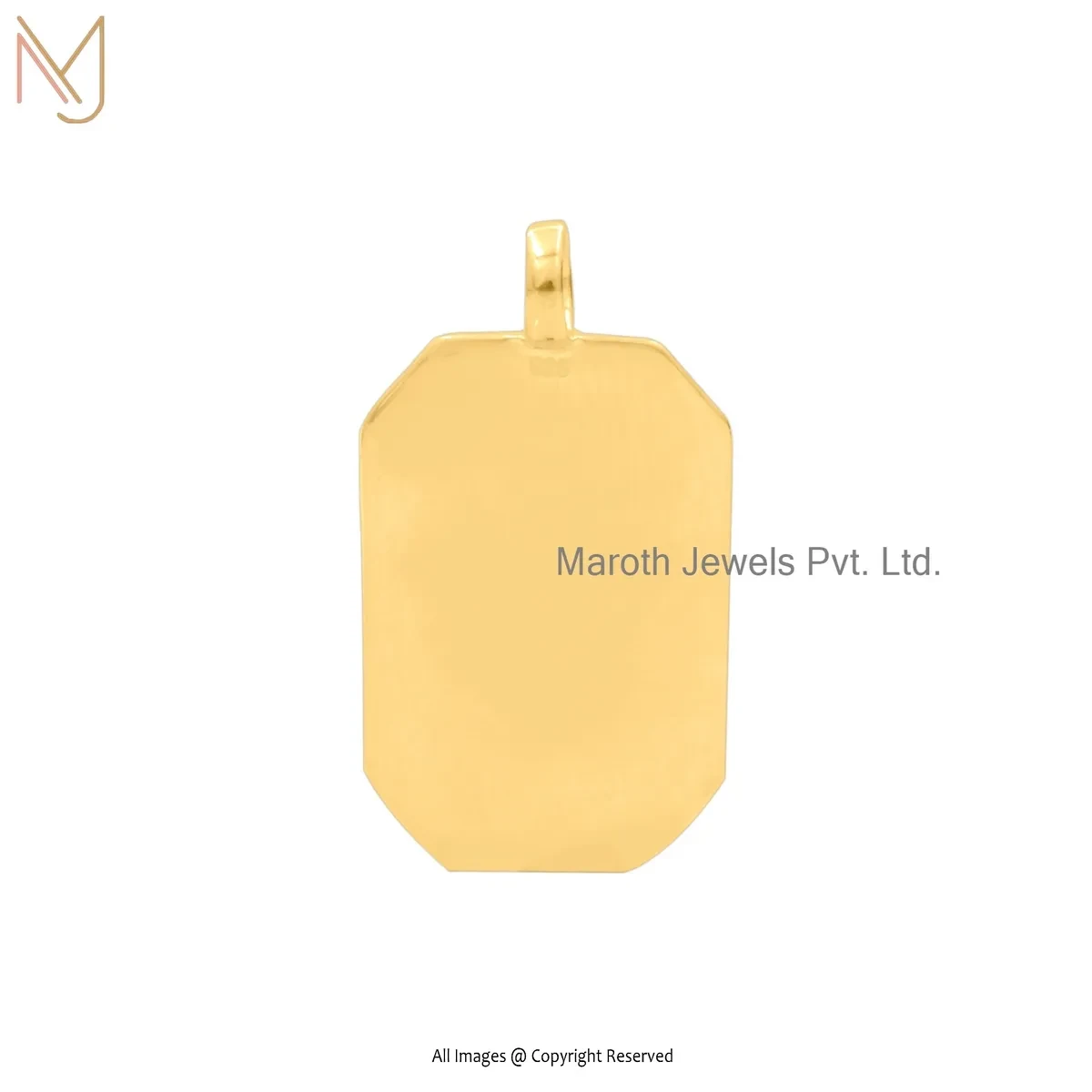 Private Lable 14K Yellow Gold Blue Sapphire Fluted Sacred Scapular Pendant
