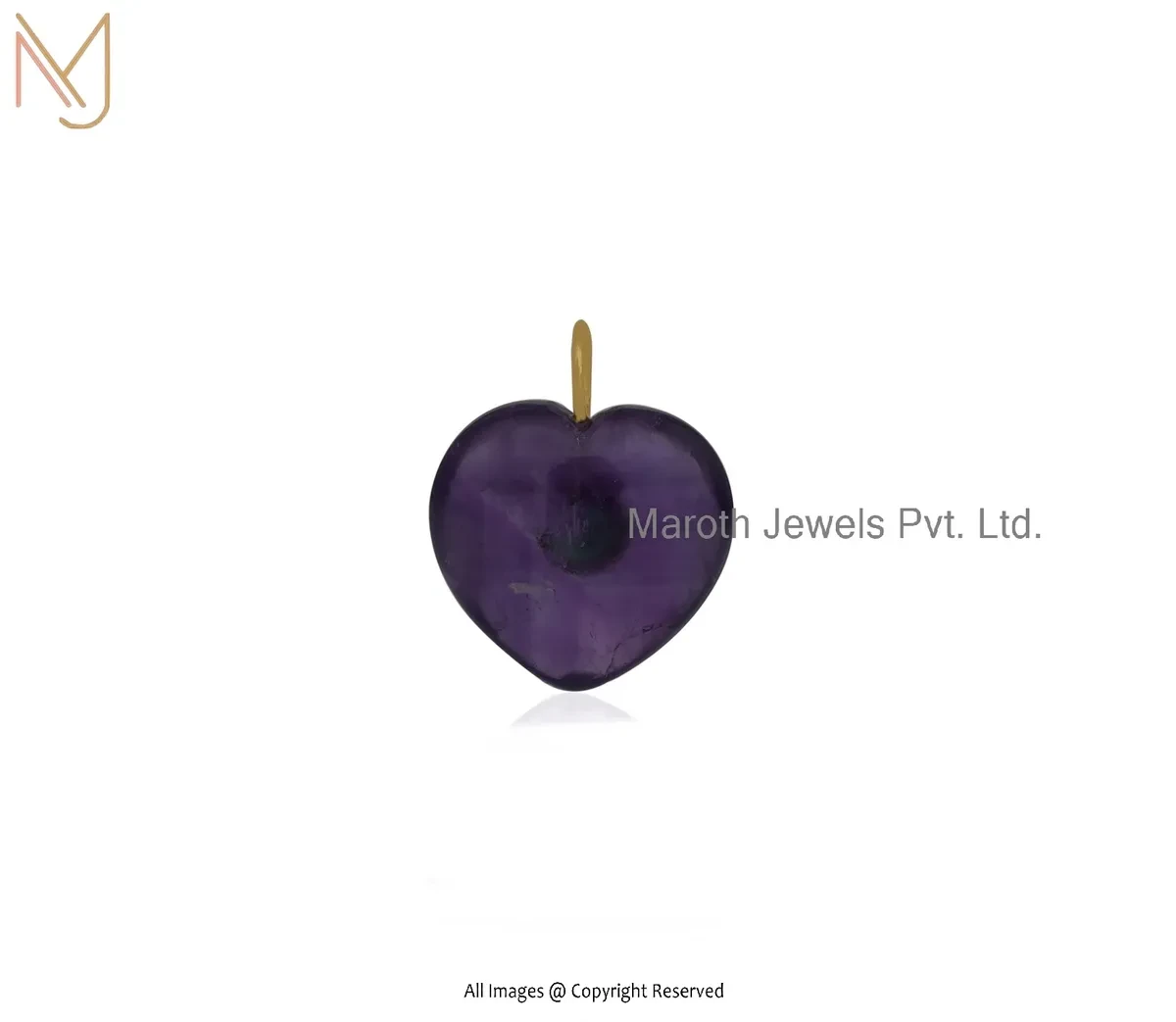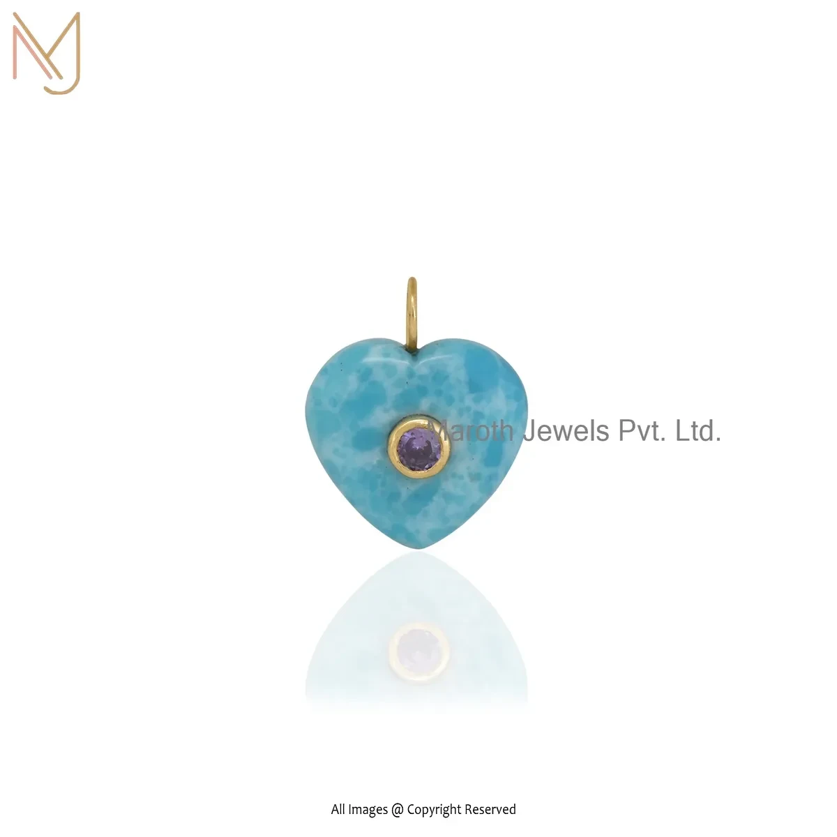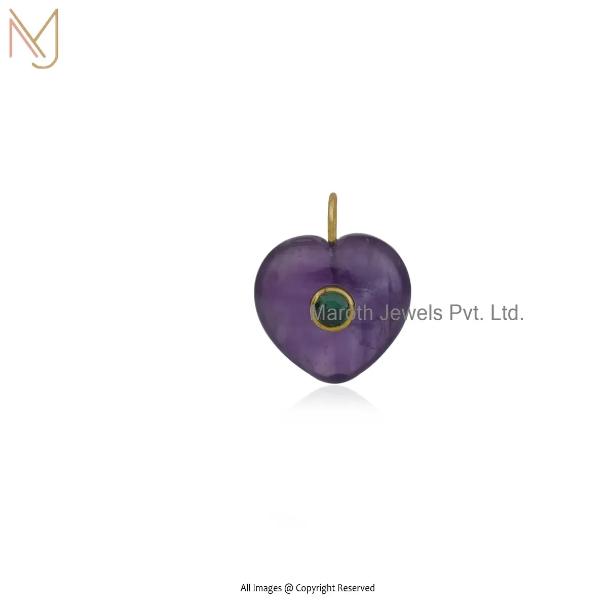 Private Lable 14K Yellow Gold Cubic Zircon & Amethyst Gemstone Heart Pendant