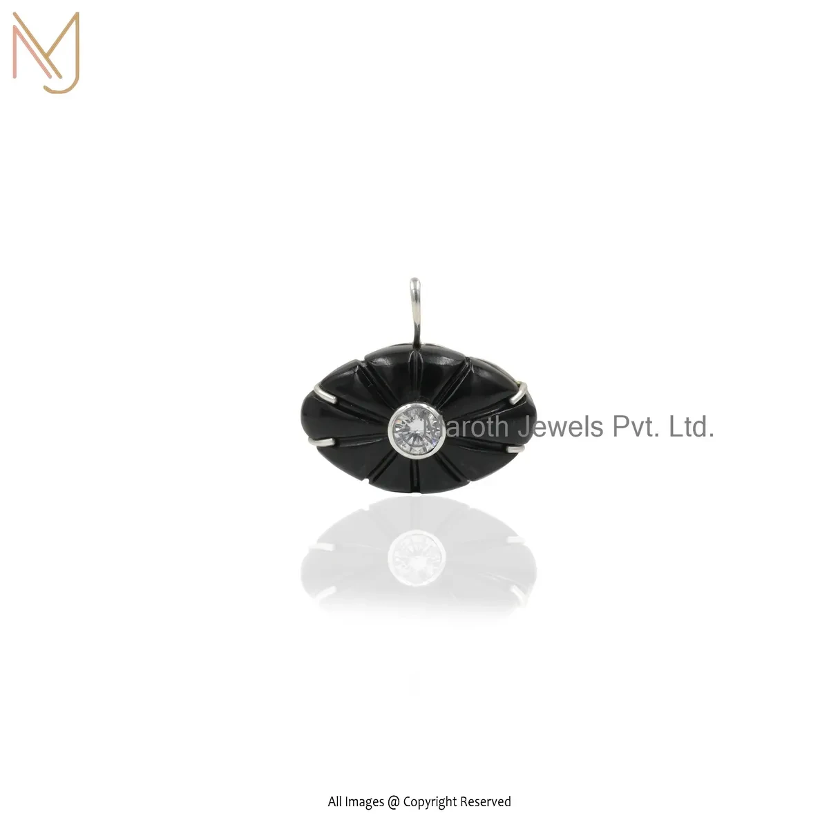 Private Lable 14K Yellow Gold Cubic Zircon & Black Onyx Gemstone Evil Eye Pendant