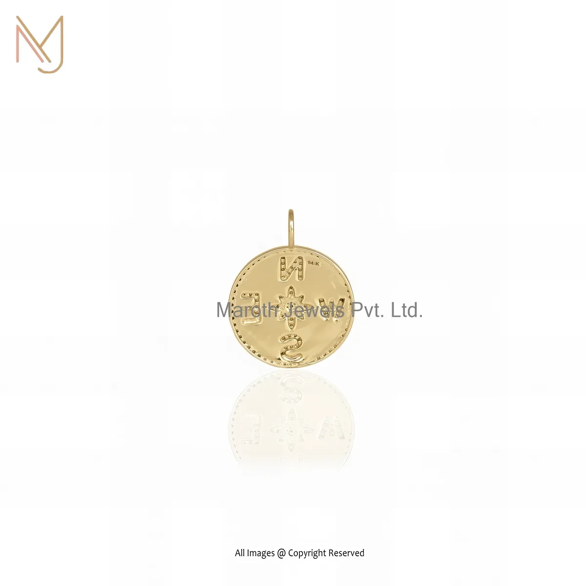 Private Lable 14K Yellow Gold Cubic Zircon Compass Charm Pendant