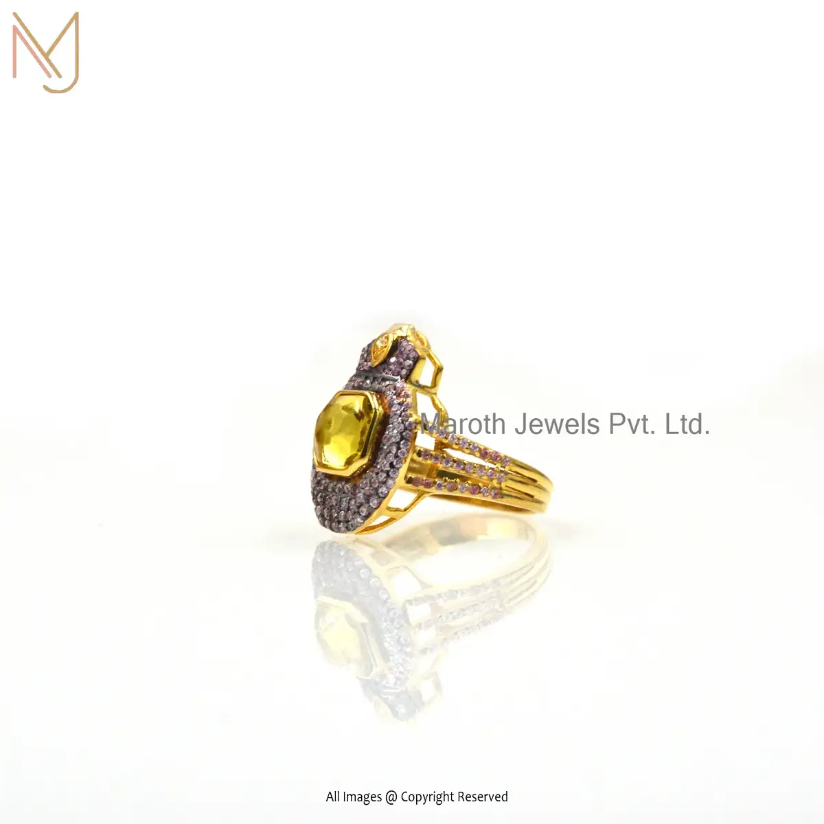 Private Lable 14K Yellow Gold Cubic Zircon Gemstone Ring