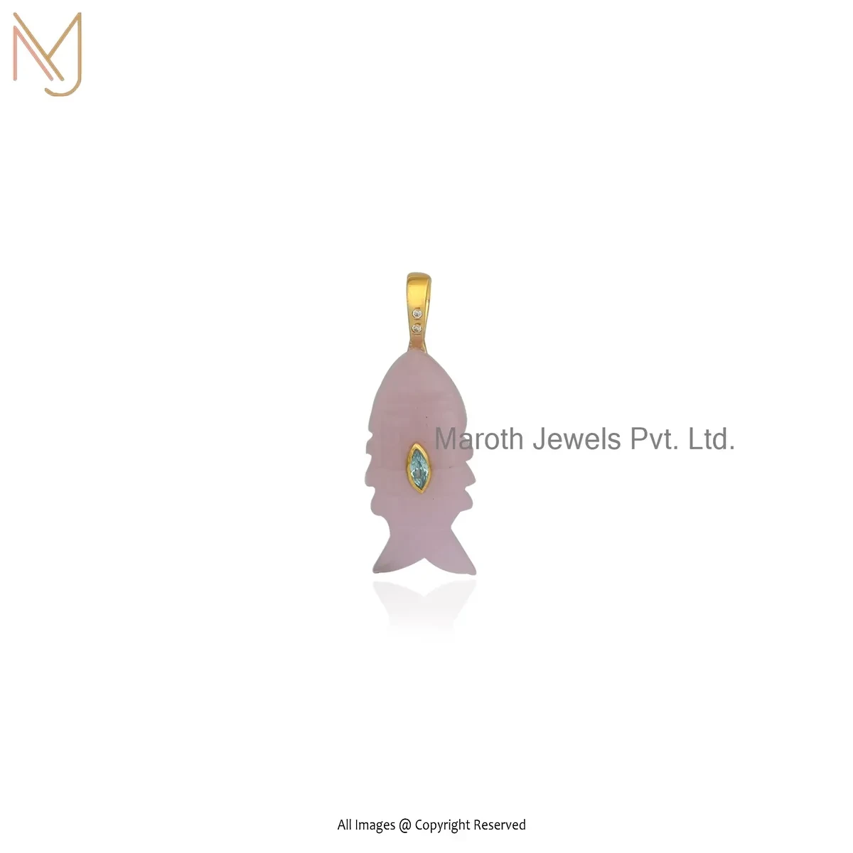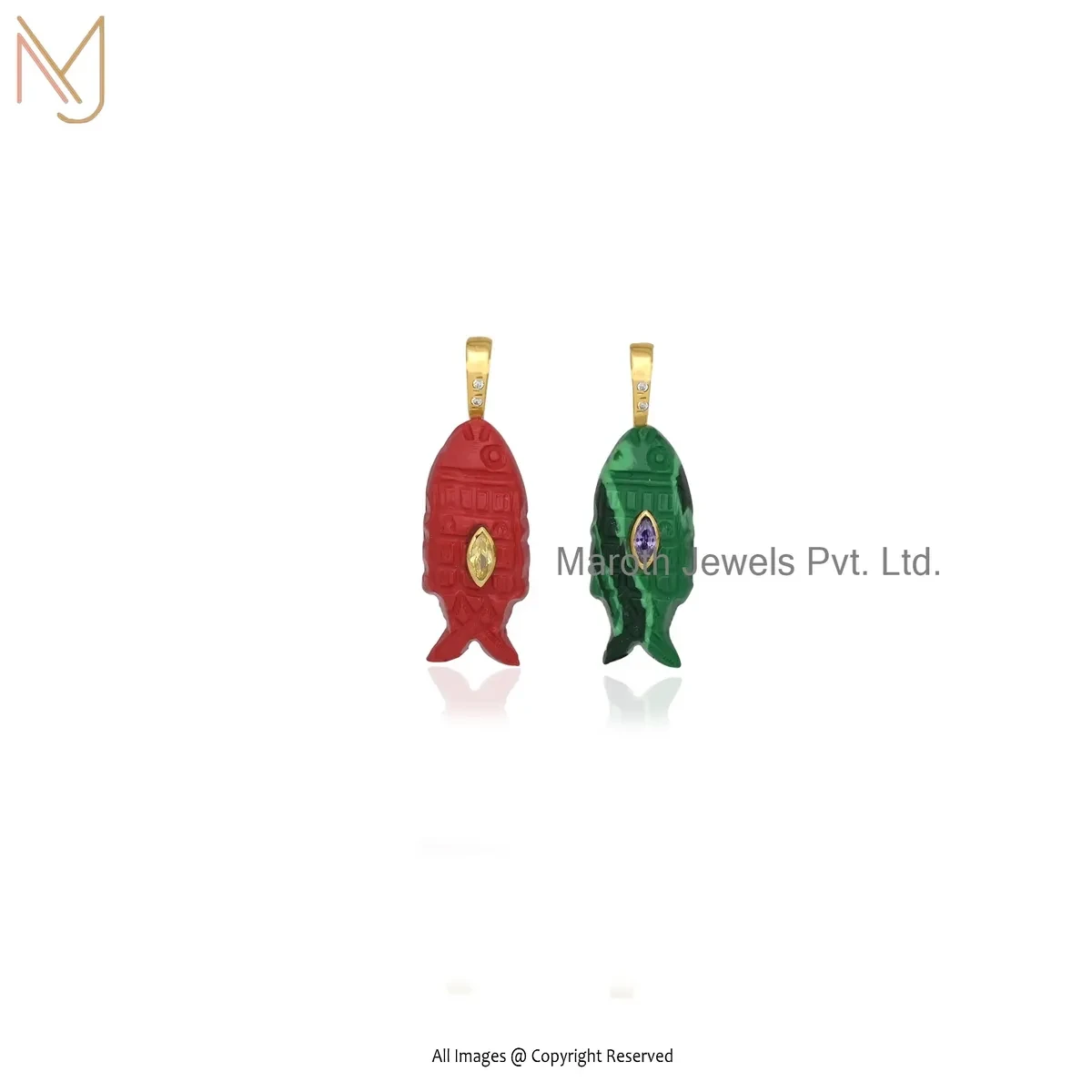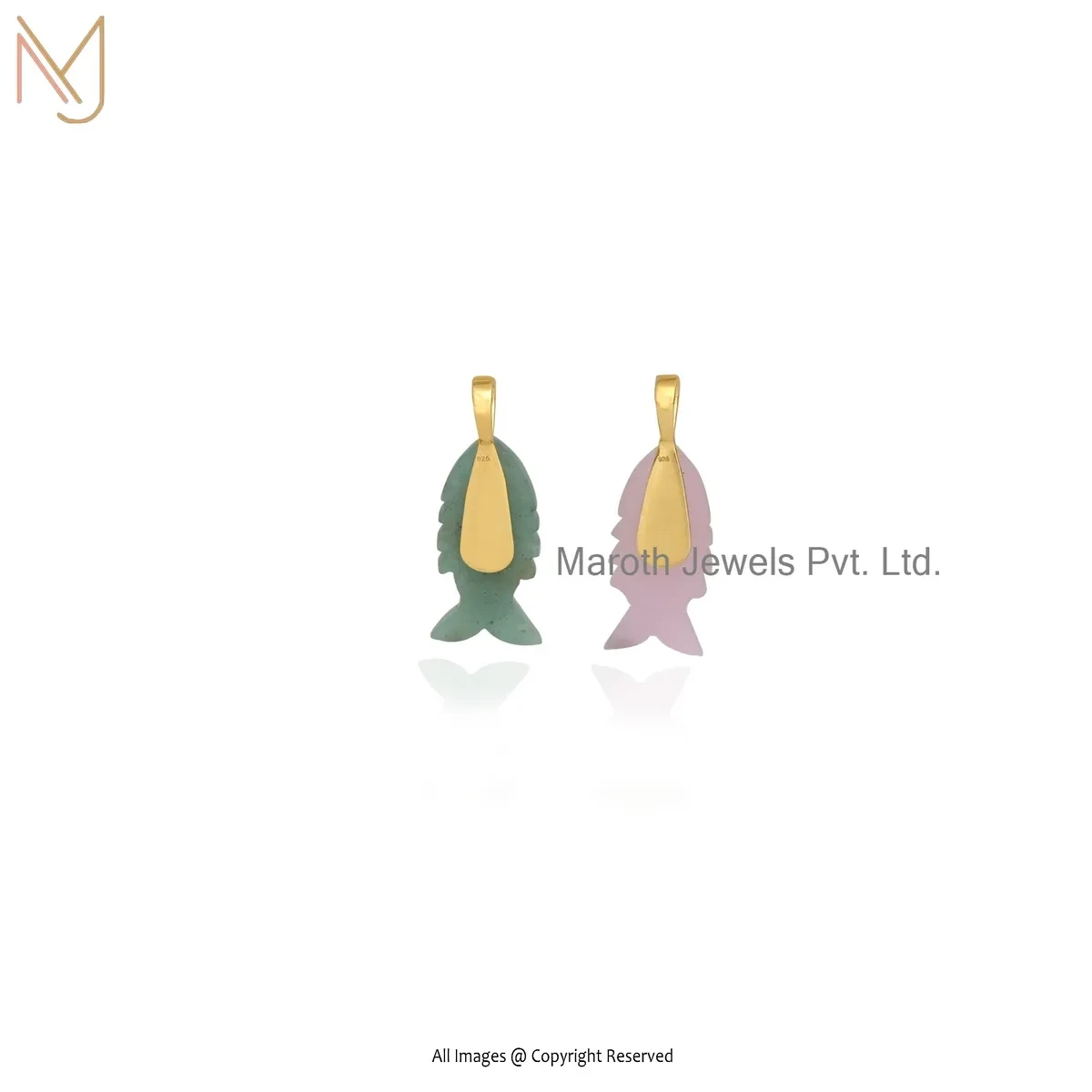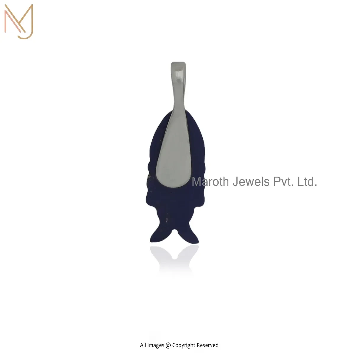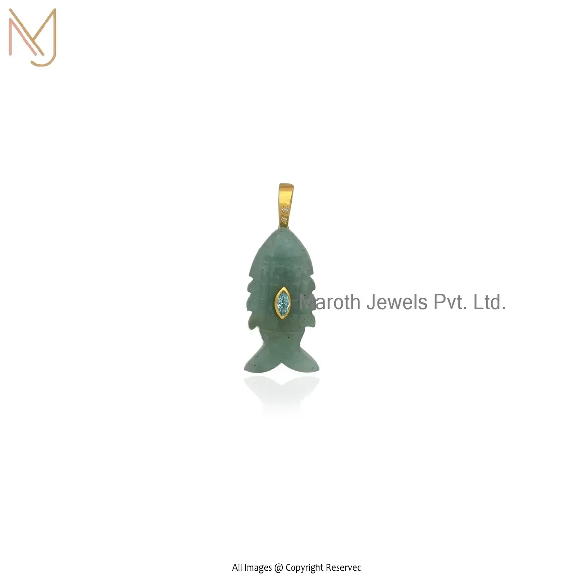 Private Lable 14K Yellow Gold Cubic Zircon & Lapiz Lazuli Gemstone Fish Pendant
