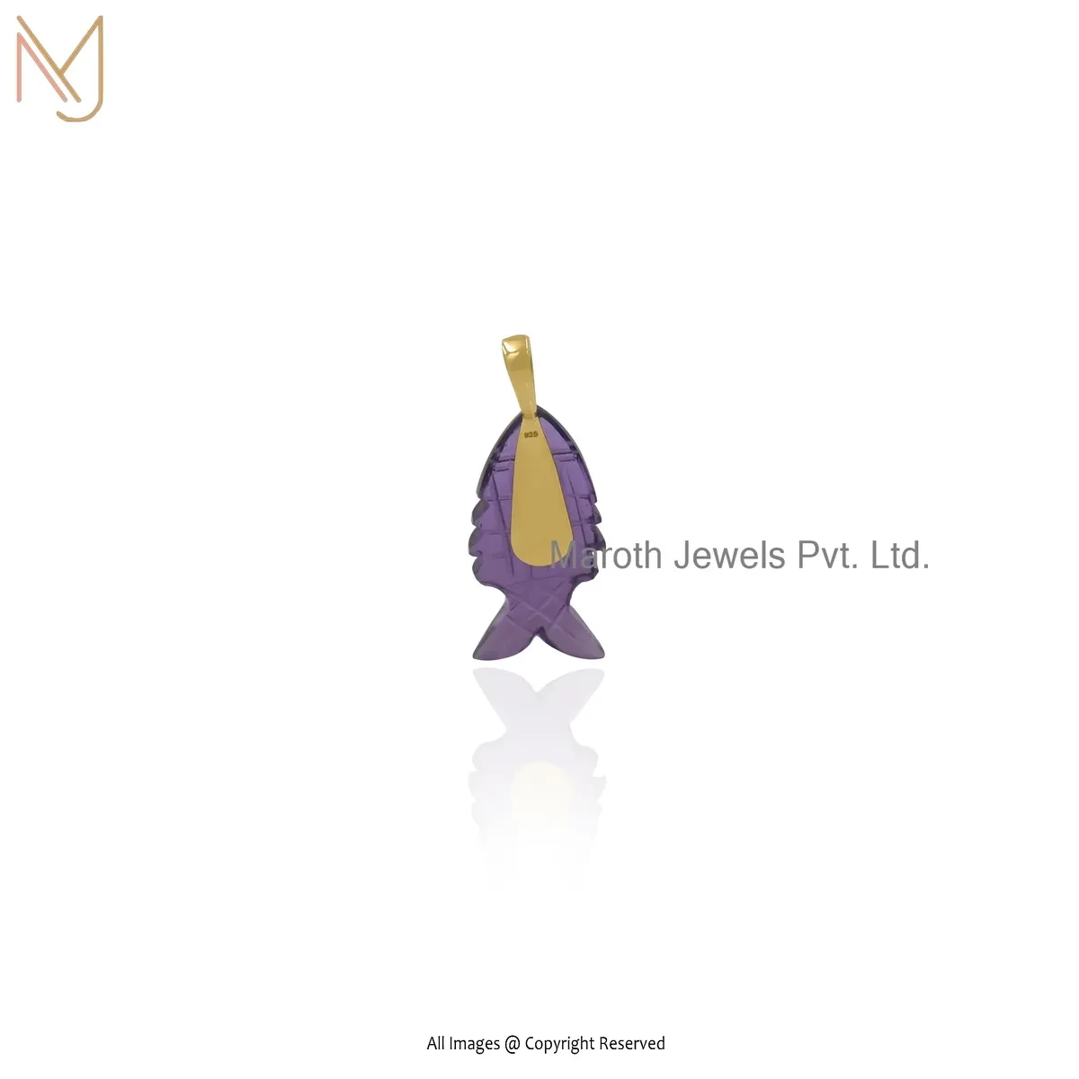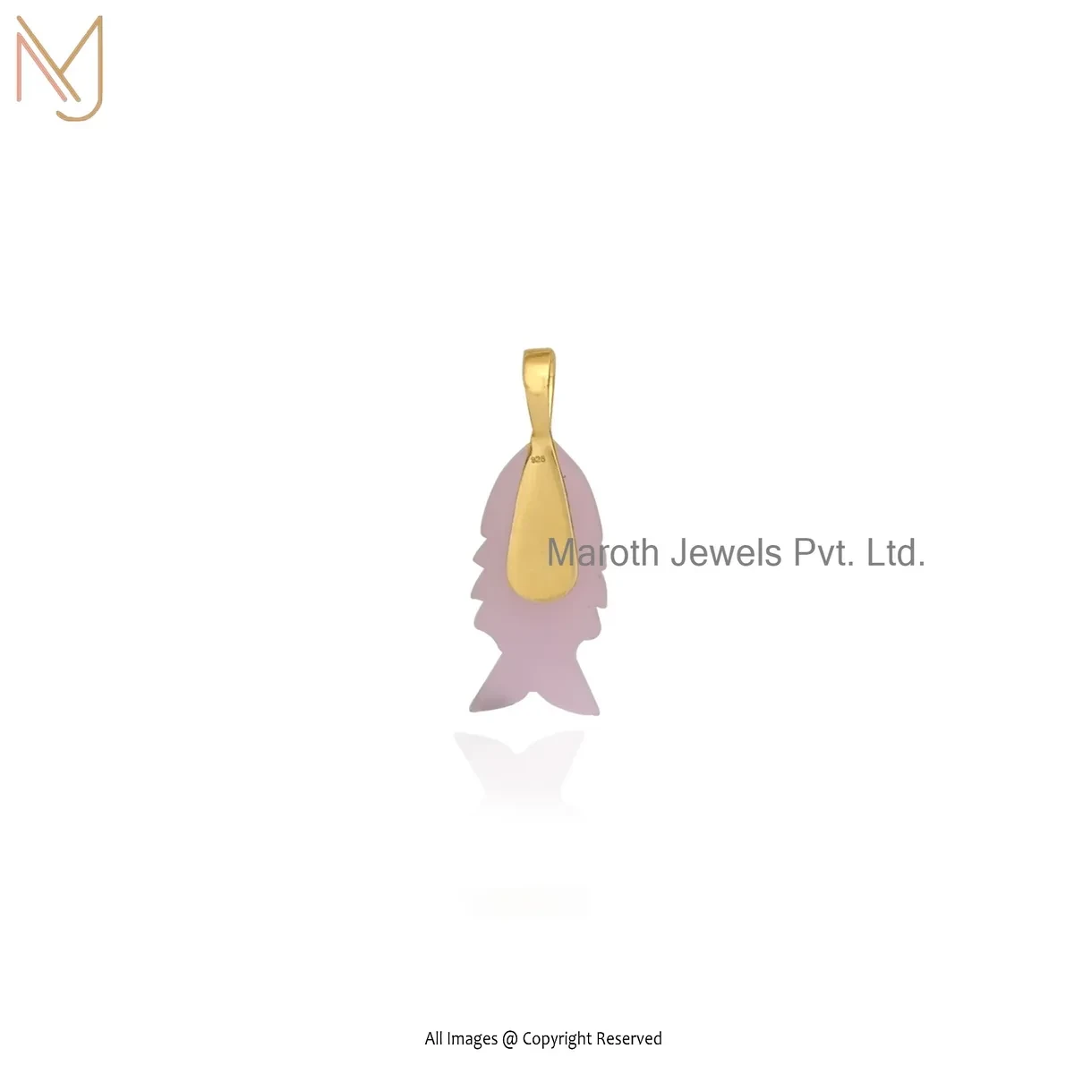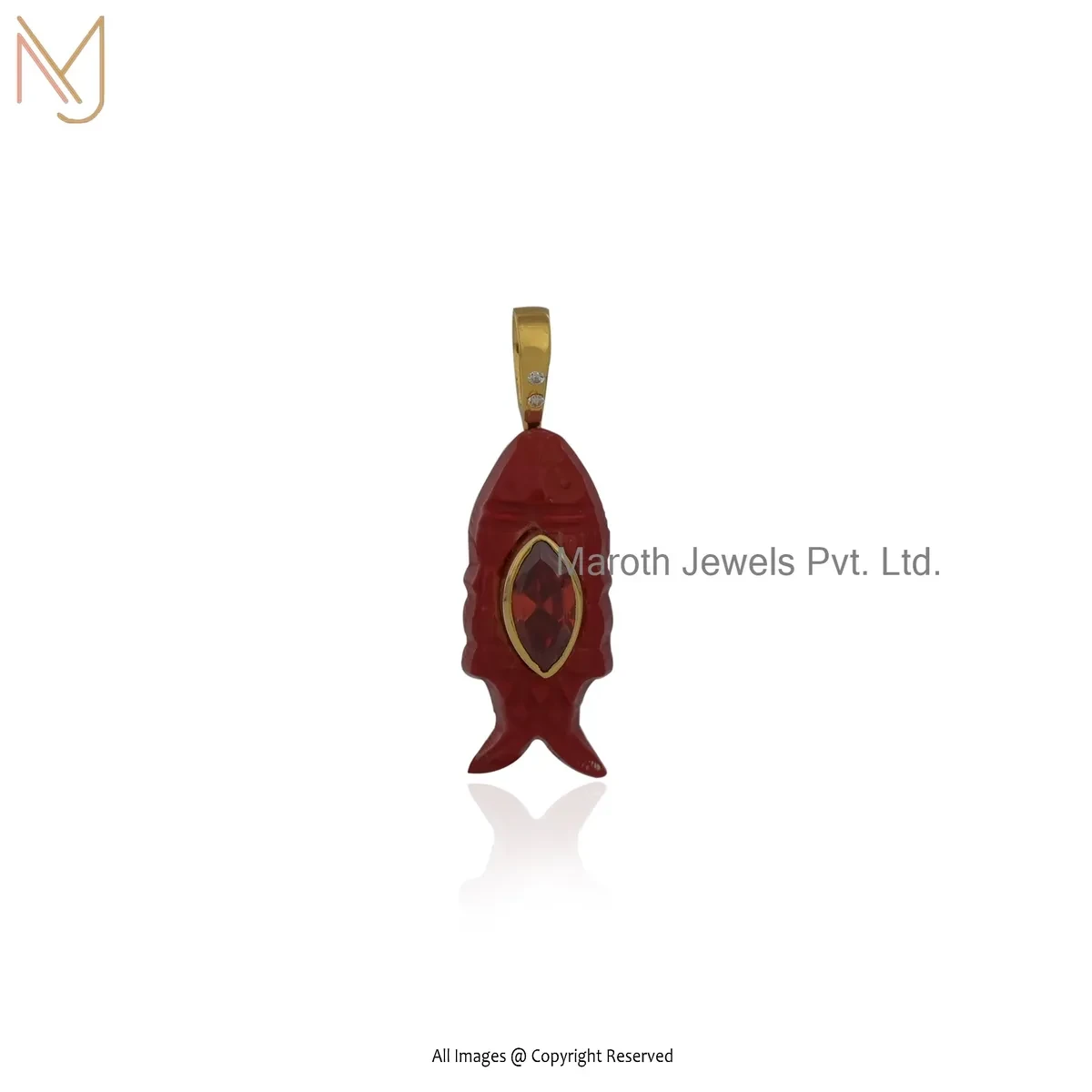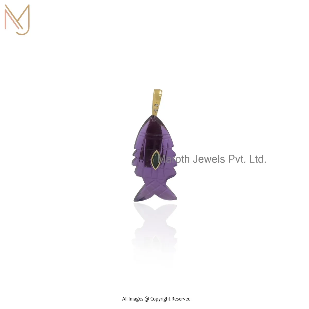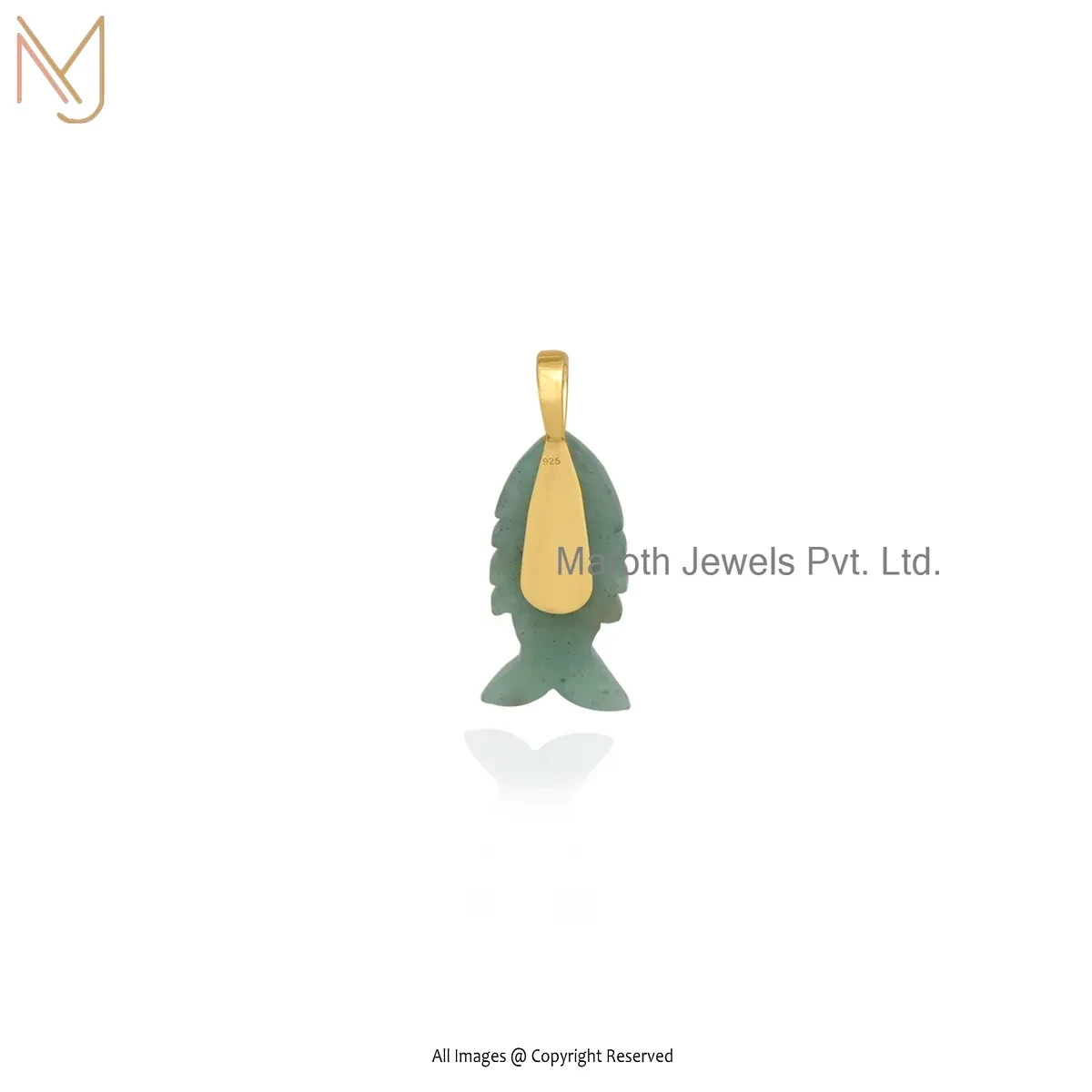 Private Lable 14K Yellow Gold Cubic Zircon & Lapiz Lazuli Gemstone Fish Pendant