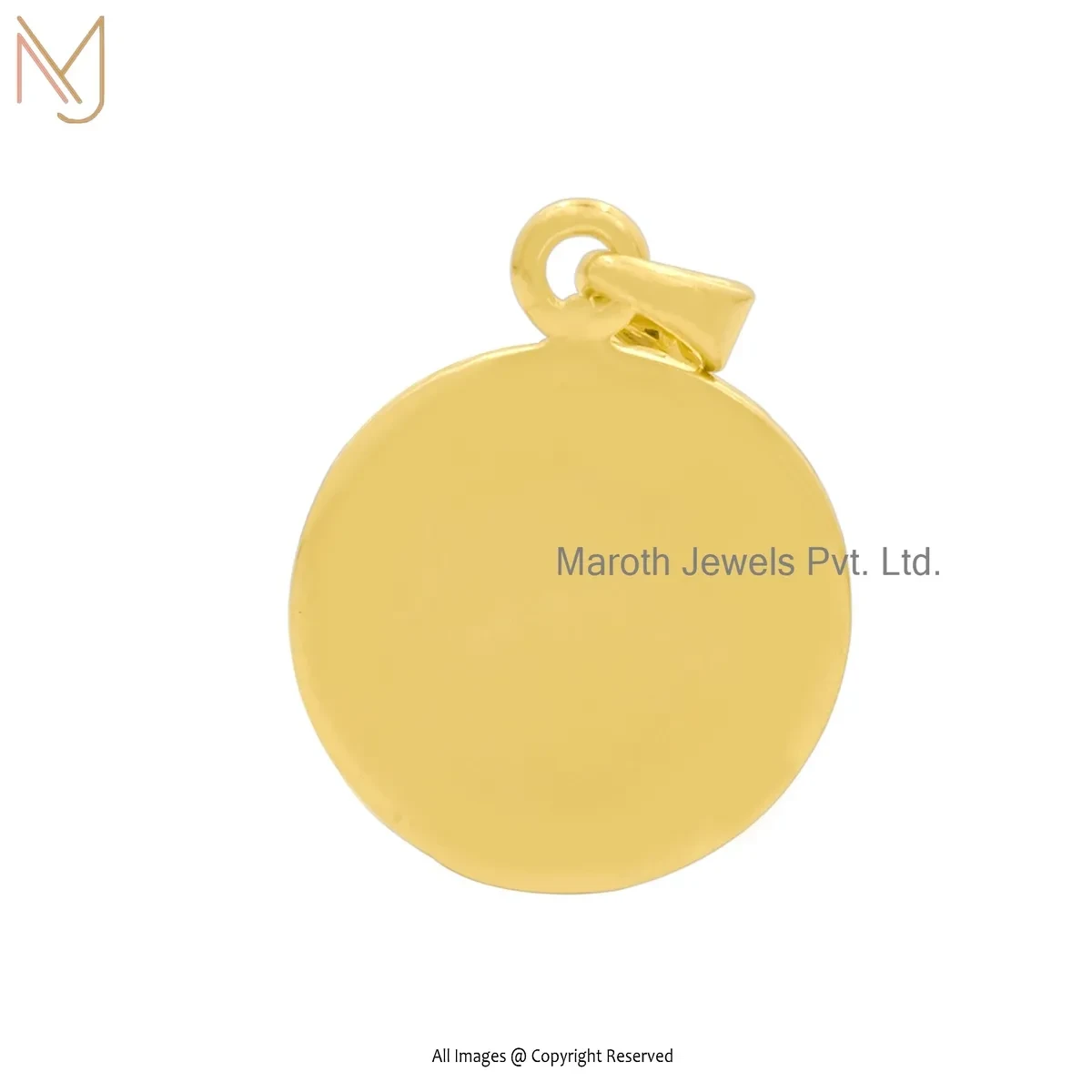 Private Lable 14K Yellow Gold Diamond & Cubic Zircon Disc Charm Pendant