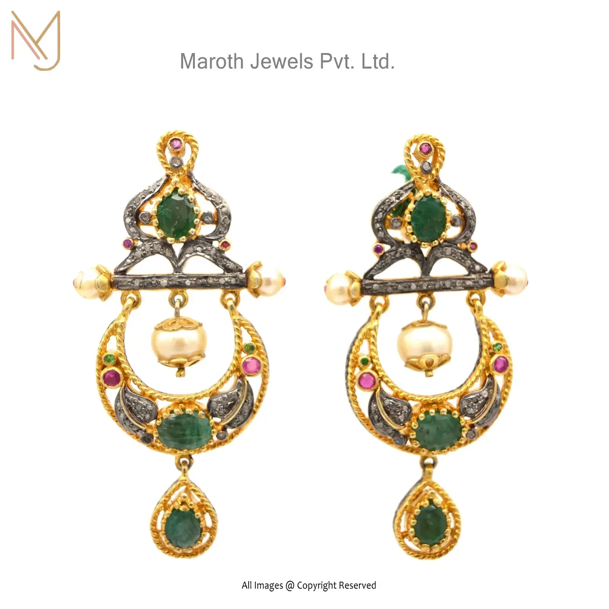 Private Lable 14K Yellow Gold Diamond, Emerald, Ruby, Pearl, Gemstone Earring