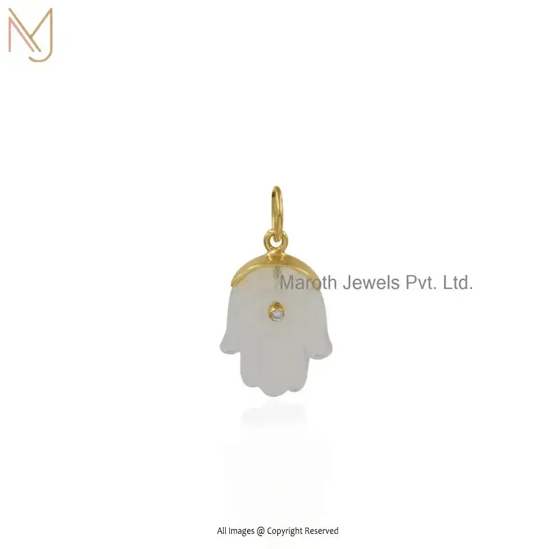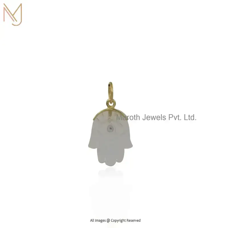 Private Lable 14K Yellow Gold Garnet-Green CZ Hamsa Gemstone Pendant