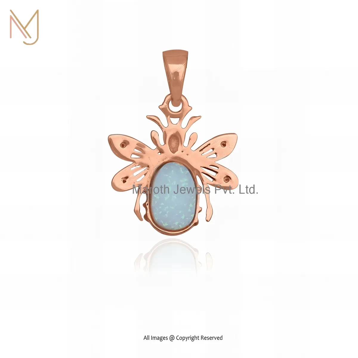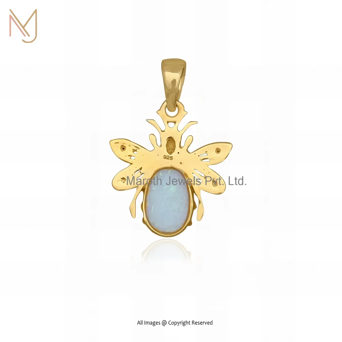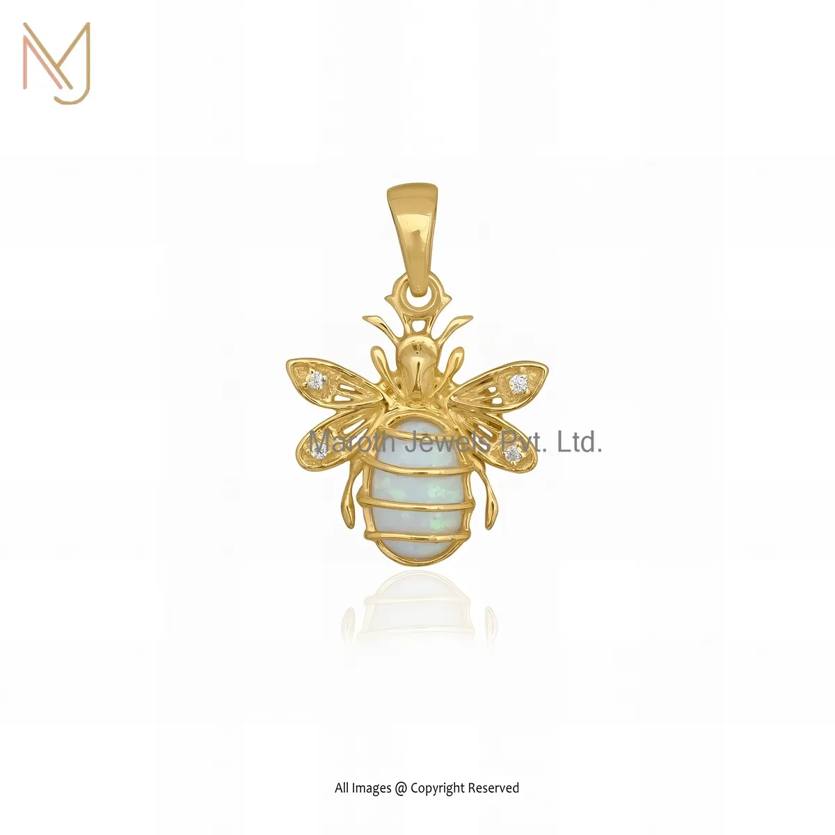 Private Lable 14K Yellow Gold Mossanite & Ethiopian Opal Gemstone Bee Charm Pendant