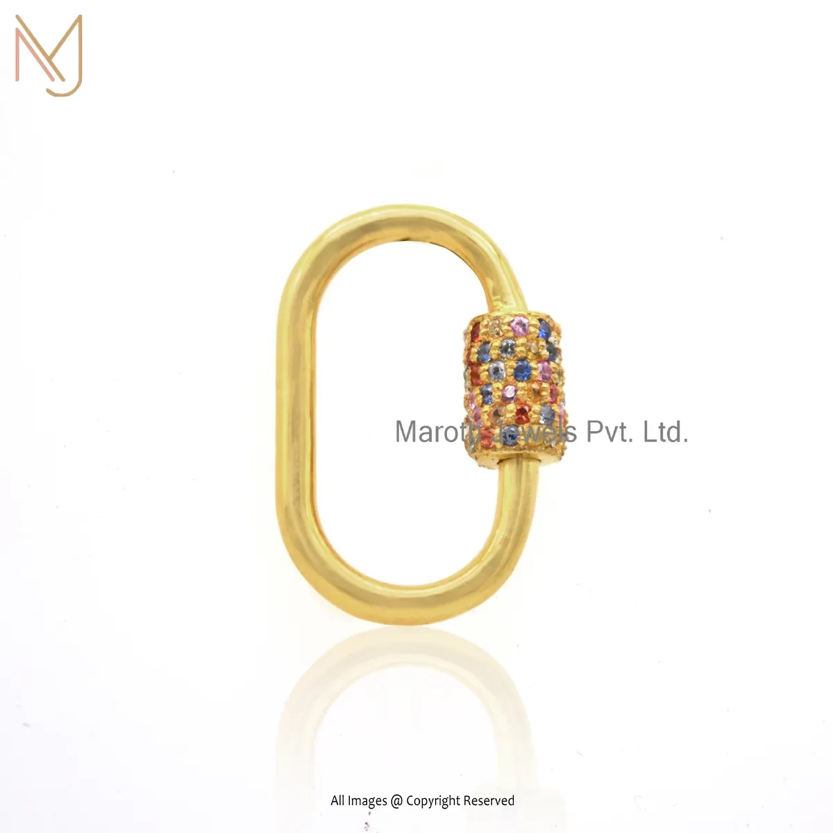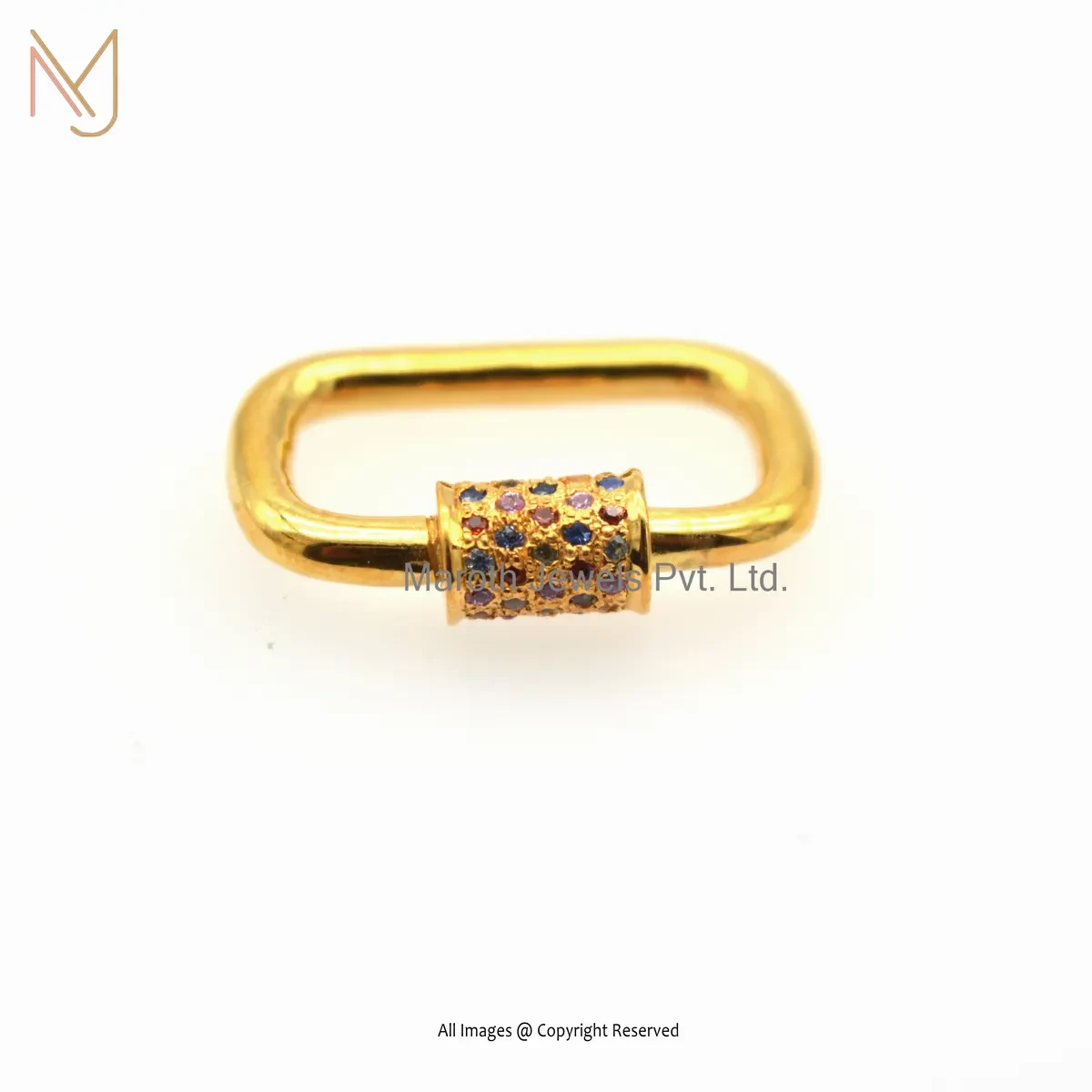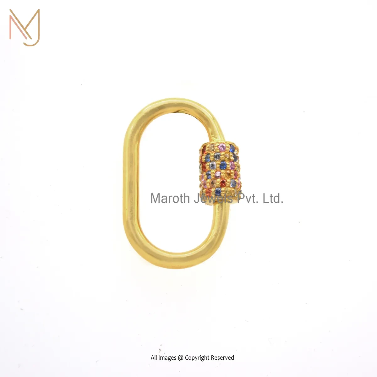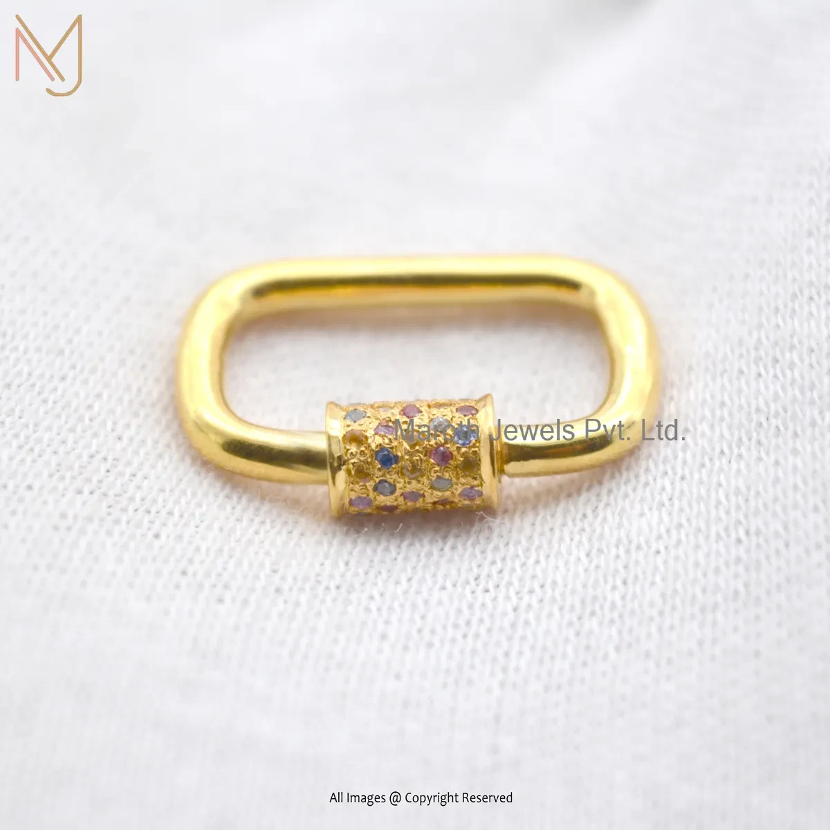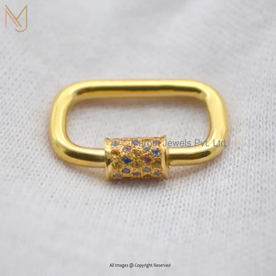Private Lable 14K Yellow Gold Multi Sapphire Handmade Chain Carabiner Lock