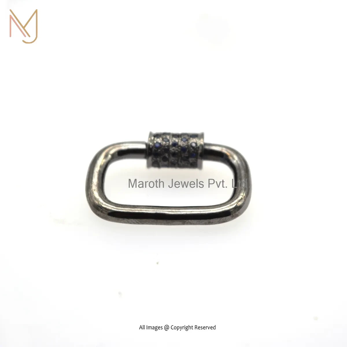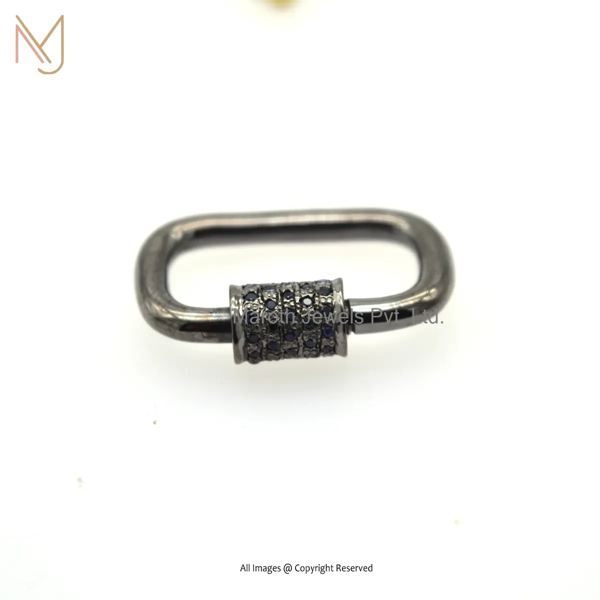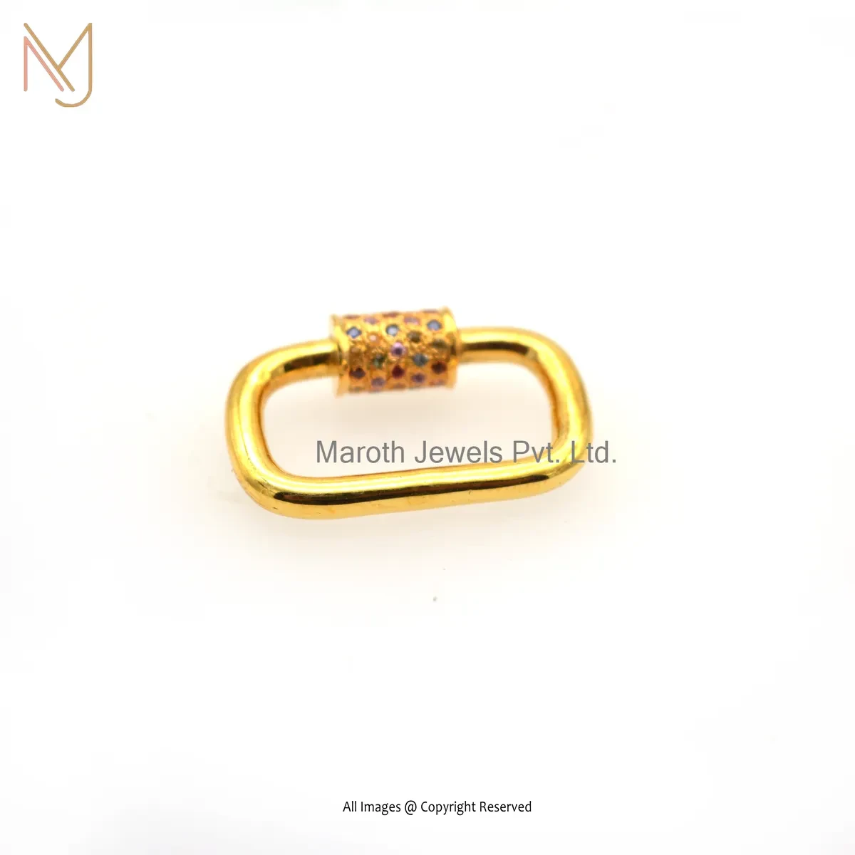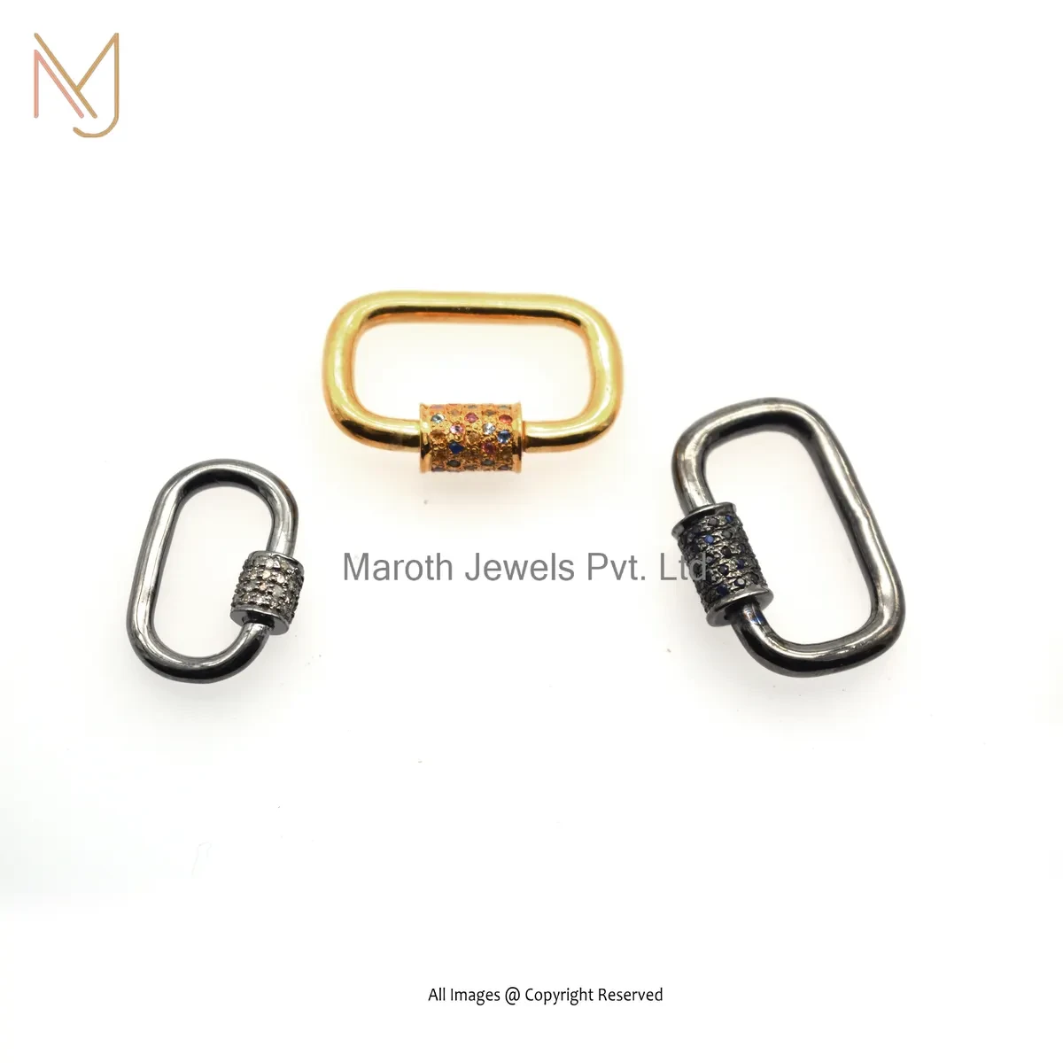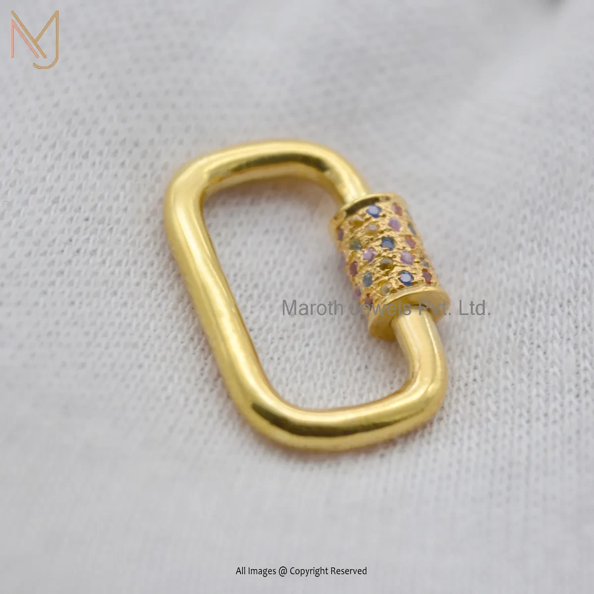 Private Lable 14K Yellow Gold Multi Sapphire Handmade Chain Carabiner Lock