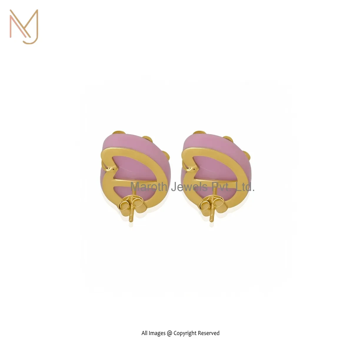 Private Lable 14K Yellow Gold Pink Opal And Amethyst Snail Stud Earring