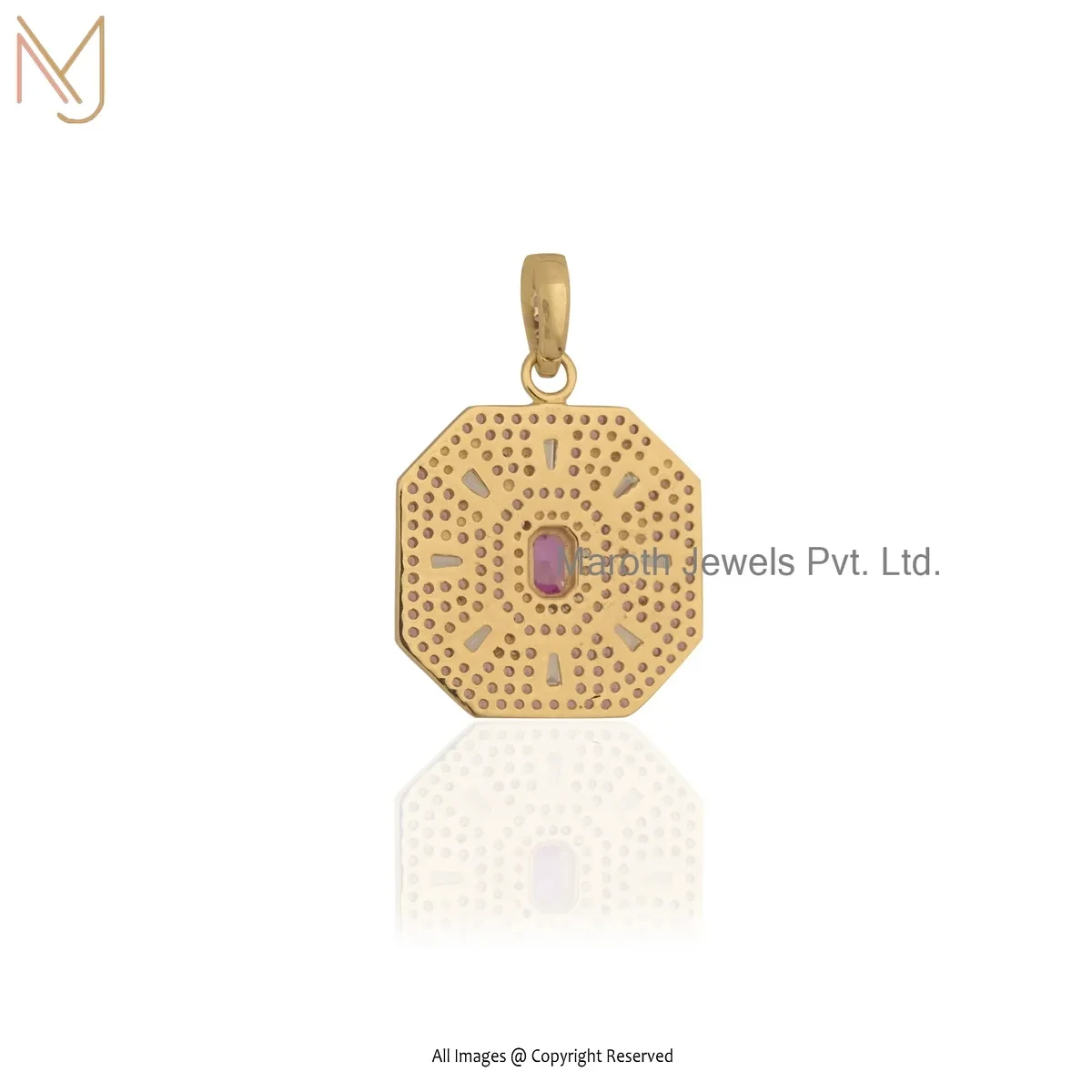 Private Lable 14K Yellow Gold Pink Sapphire & Cubic Zircon Baguette Pendant