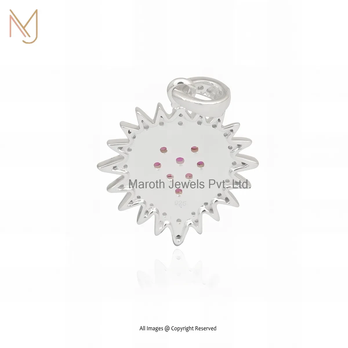 Private Lable 14K Yellow Gold Ruby Cubic Zircon Fluted Heart Charm Pendant