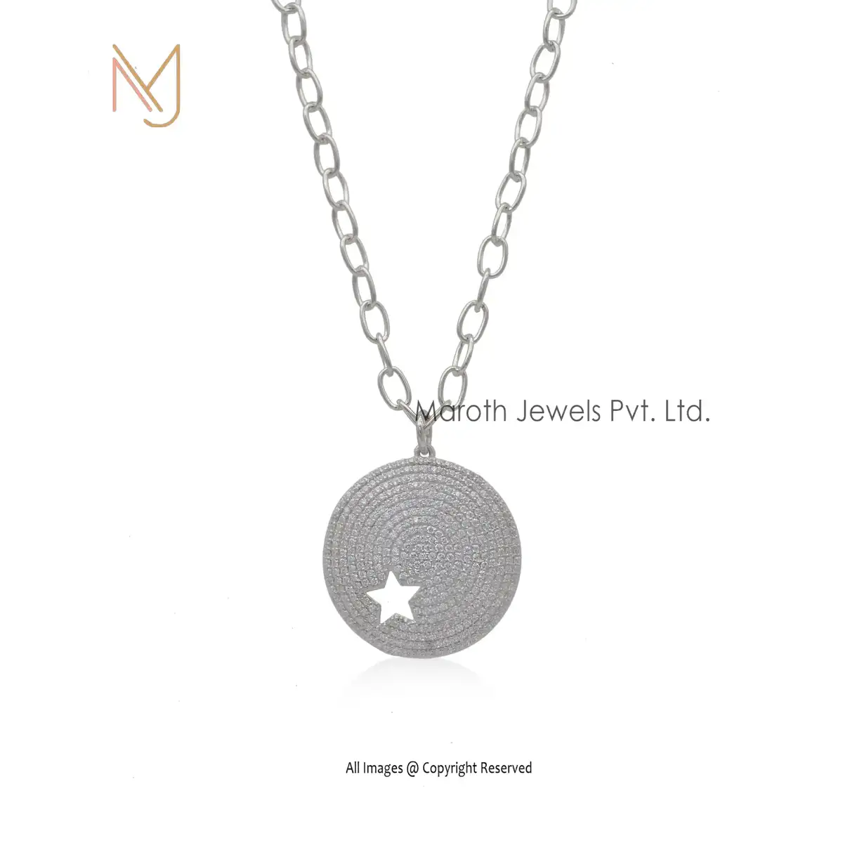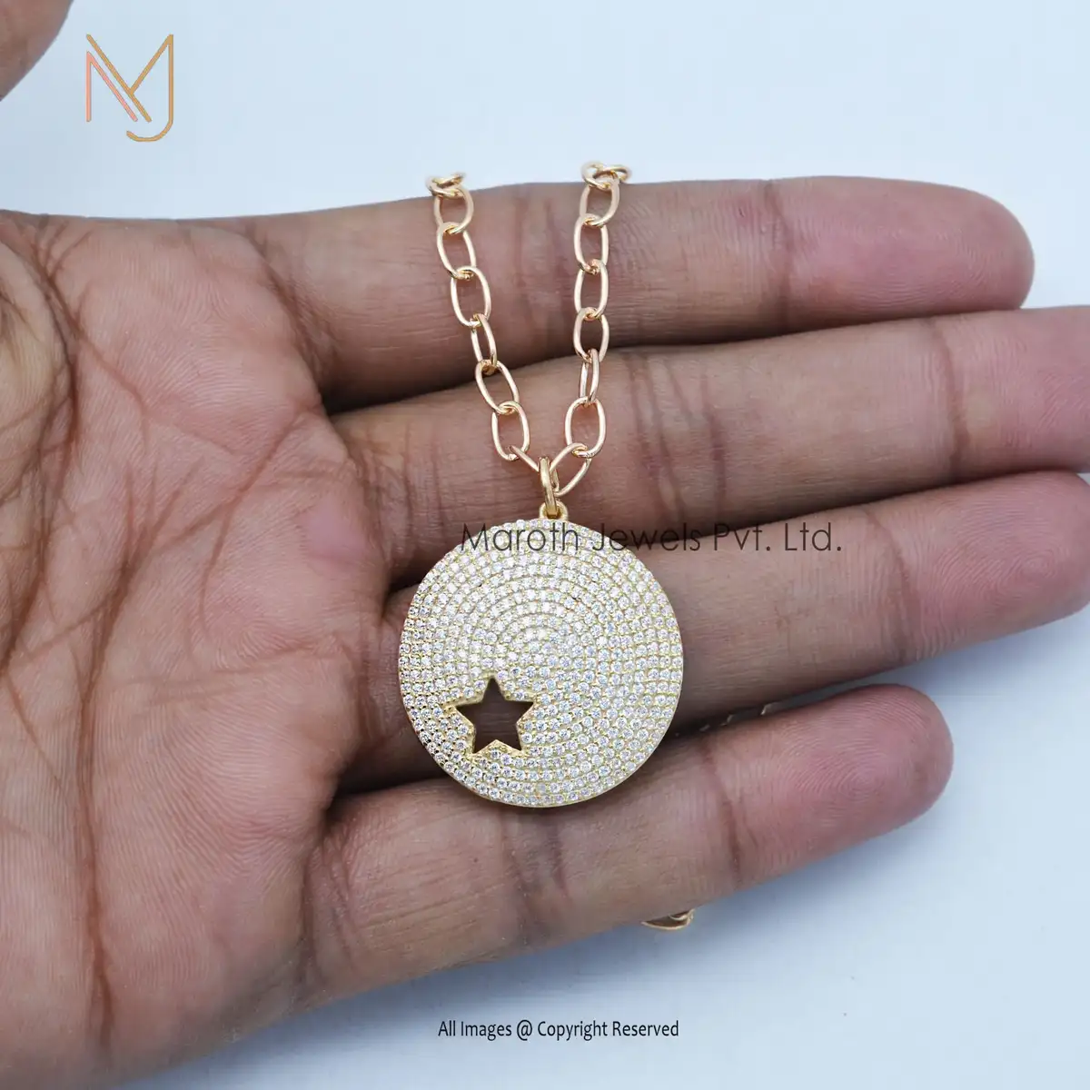 Private Lable 14K Yellow Gold Solid Pave Diamond Star Disk Pendant Jewelry