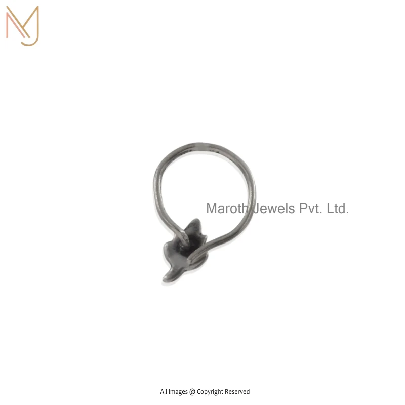 Private Lable 925 Silver Rhodium Oxidized Leaf Nose Pin Piercing Jewelry