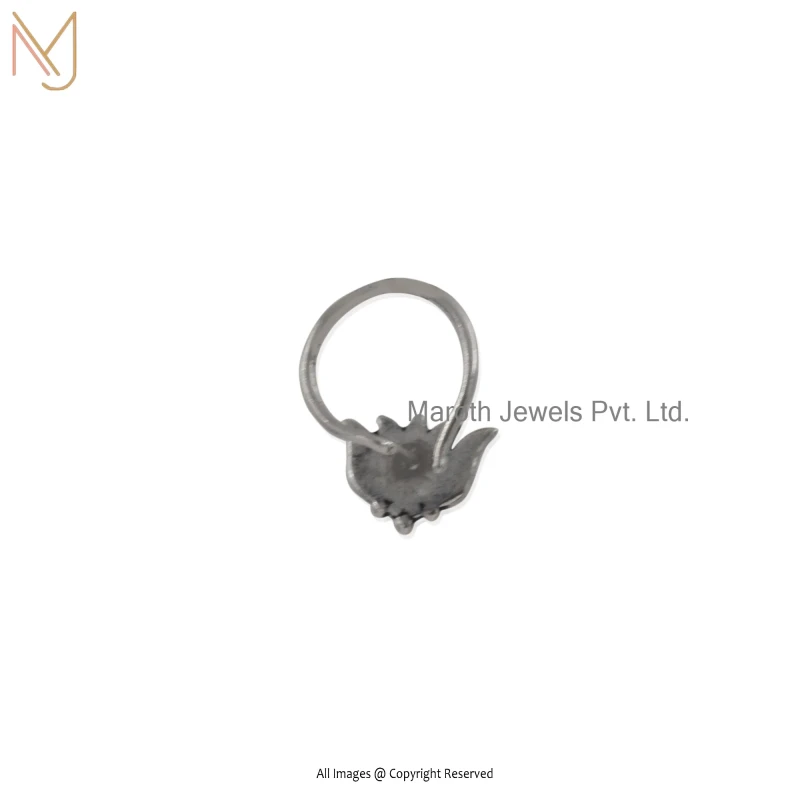 Private Lable 925 Silver Rhodium Oxidized Lotus Rose Flower Nose Pin Piercing Jewelry