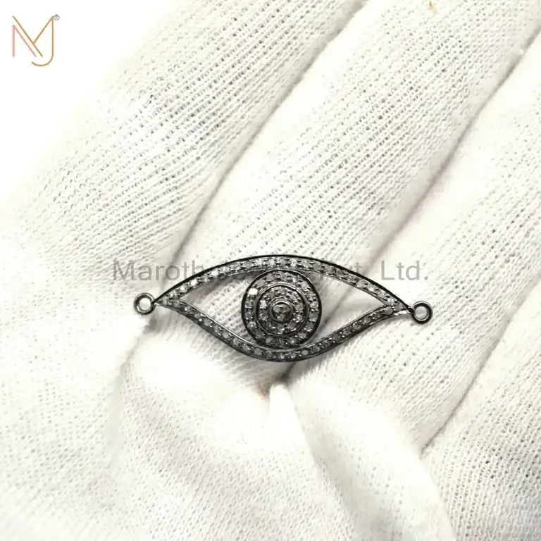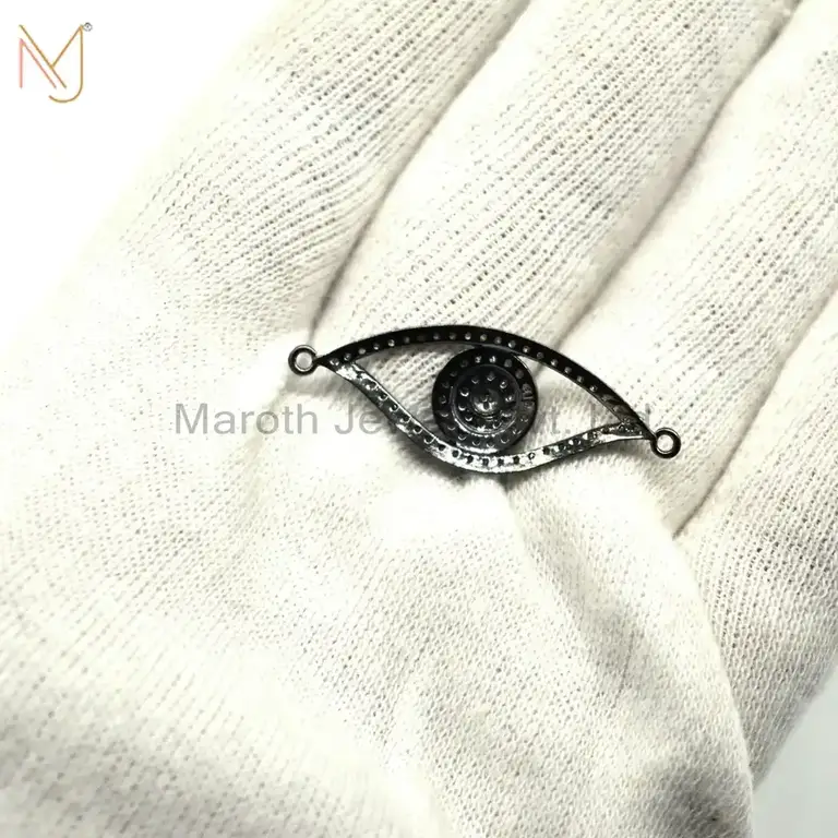 Private Lable 925 Silver Rhodium Pave Diamond Evil Eye Charm Pendant Jewelry