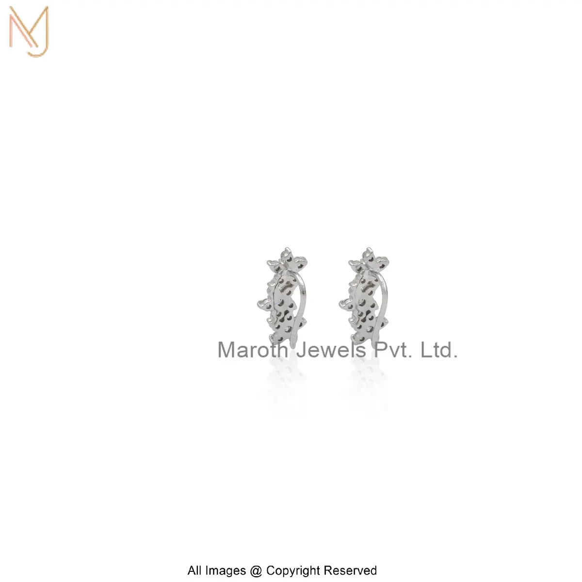 Private Lable 925 Silver White Gold Plated Diamond Cubic Zircon Triple Star Flower Shape Stud Earring
